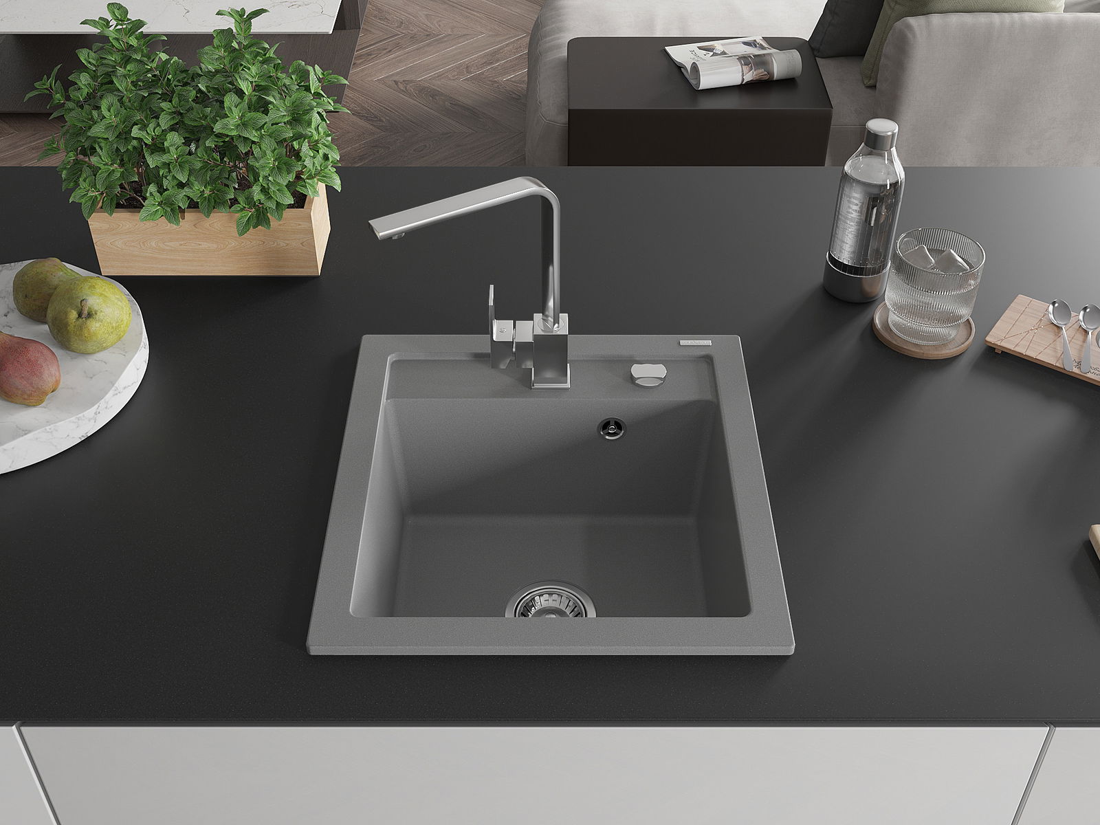 Мивката е направена от висококачествен гранит. Това е елегантно и най -вече практично допълнение към всяка кухня, независимо от нейния стил. Висококачествената и гранитна издръжливост осигуряват много години употреба.