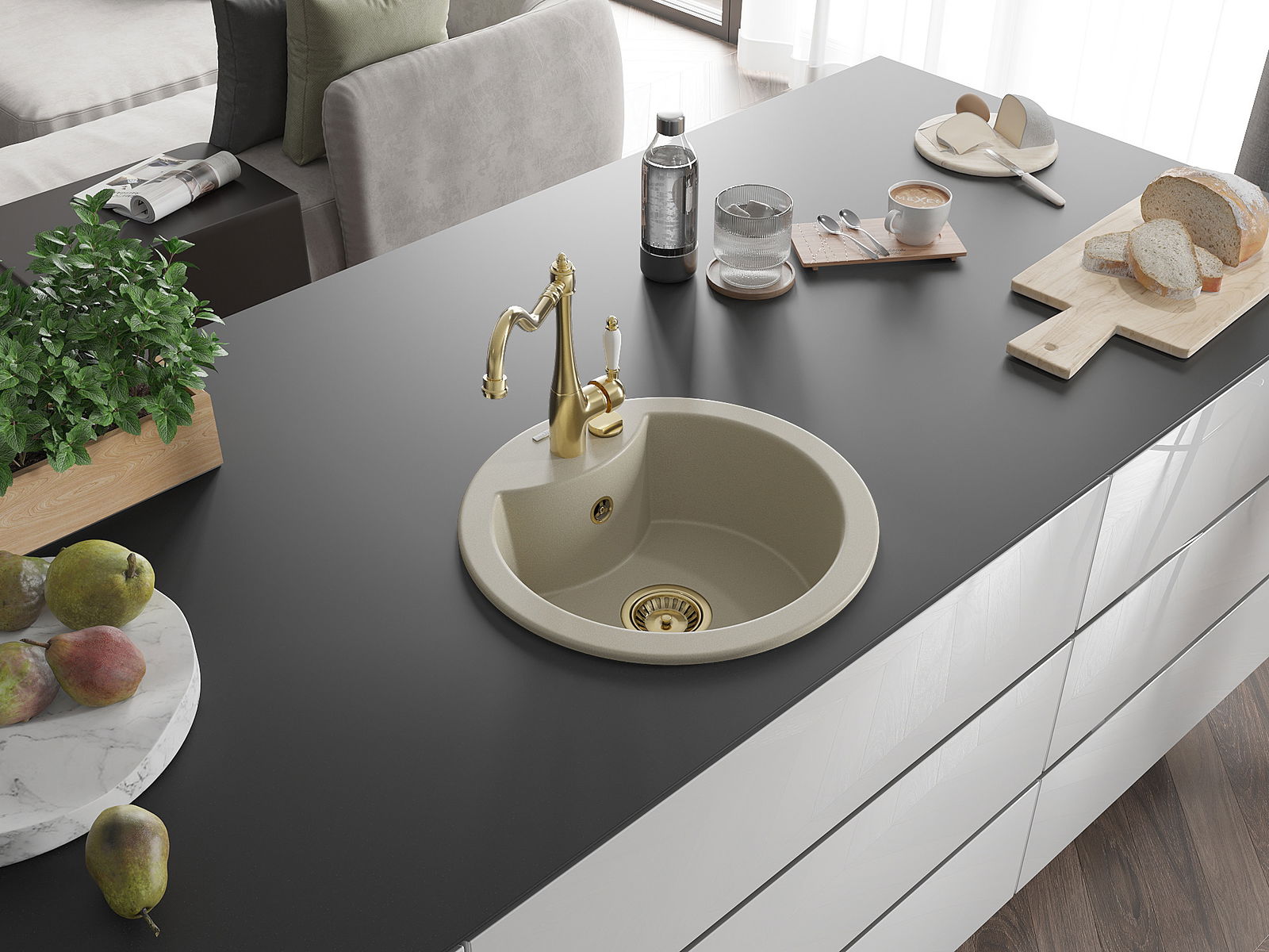 Мивката е направена от висококачествен гранит. Това е елегантно и най -вече практично допълнение към всяка кухня, независимо от нейния стил. Висококачествената и гранитна издръжливост осигуряват много години употреба.