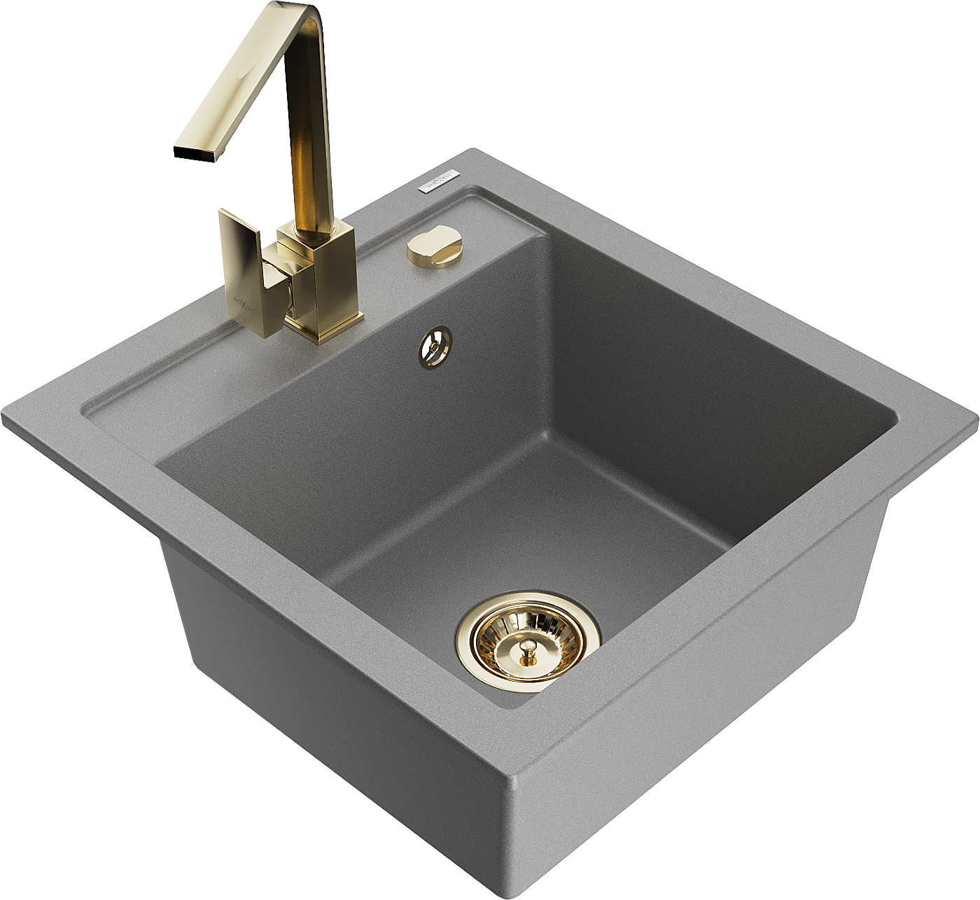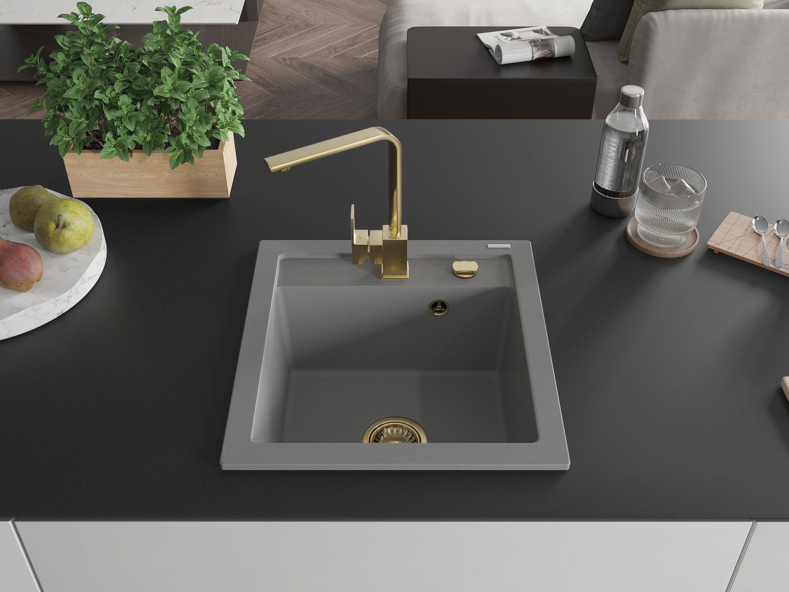 Mexen Vito гранитна кухненска мивка с 1 отделение и кухненски смесител Rita, сив - 6503-71-670300-50