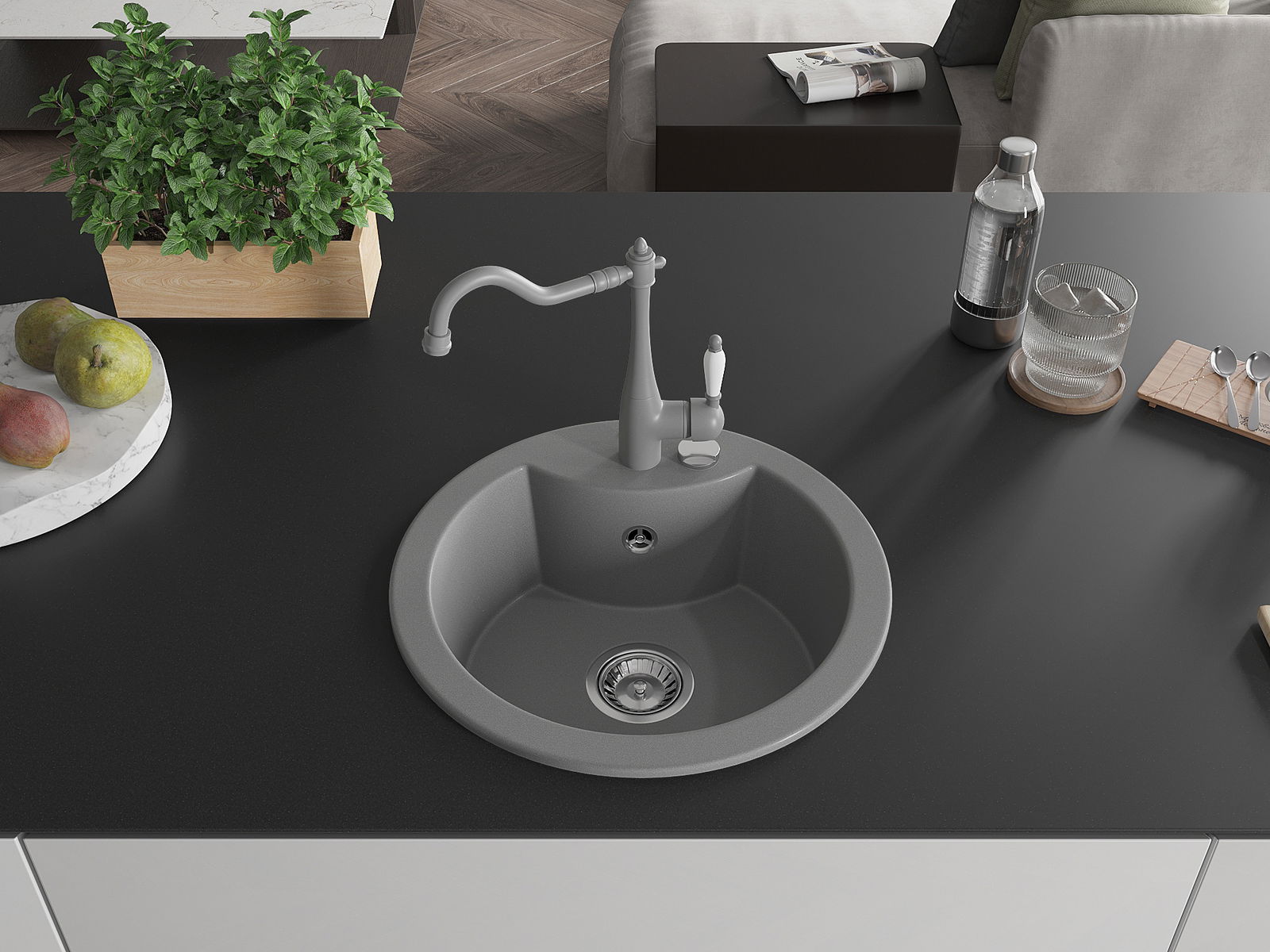 Мивката е направена от висококачествен гранит. Това е елегантно и най -вече практично допълнение към всяка кухня, независимо от нейния стил. Висококачествената и гранитна издръжливост осигуряват много години употреба.