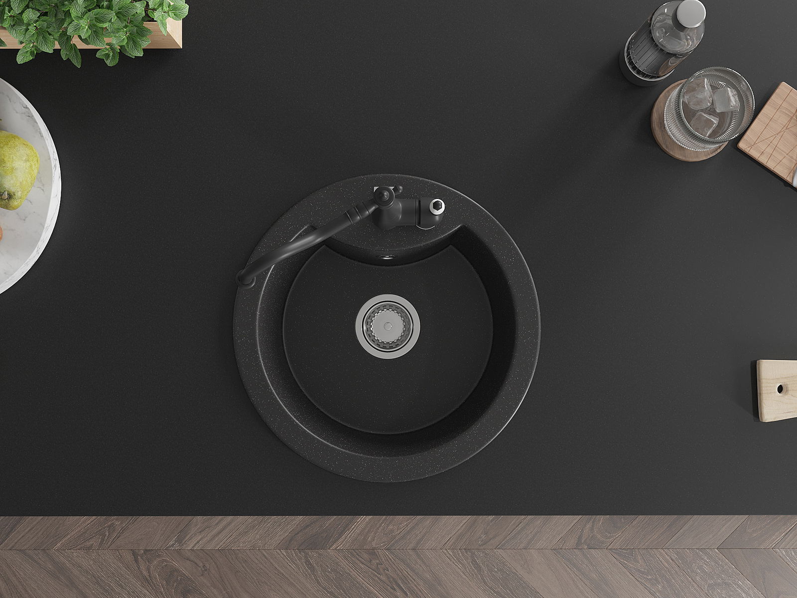 Мивката е направена от висококачествен гранит. Това е елегантно и най -вече практично допълнение към всяка кухня, независимо от нейния стил. Висококачествената и гранитна издръжливост осигуряват много години употреба.
