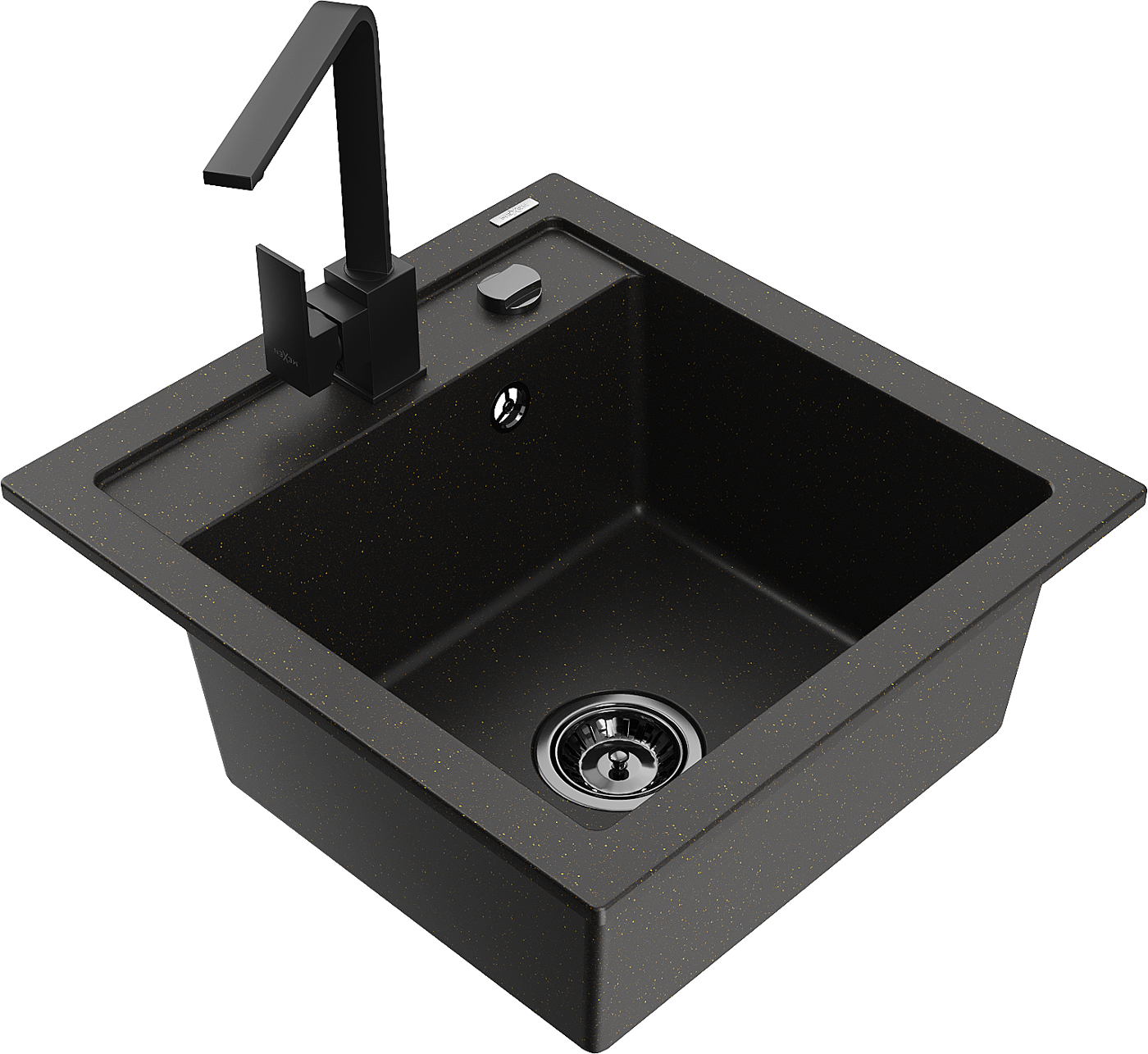 Мивка от гранит Mexen Vito с 1 отделение и кухненски смесител Rita, черен/златист металик - 6503-75-670300-70-B