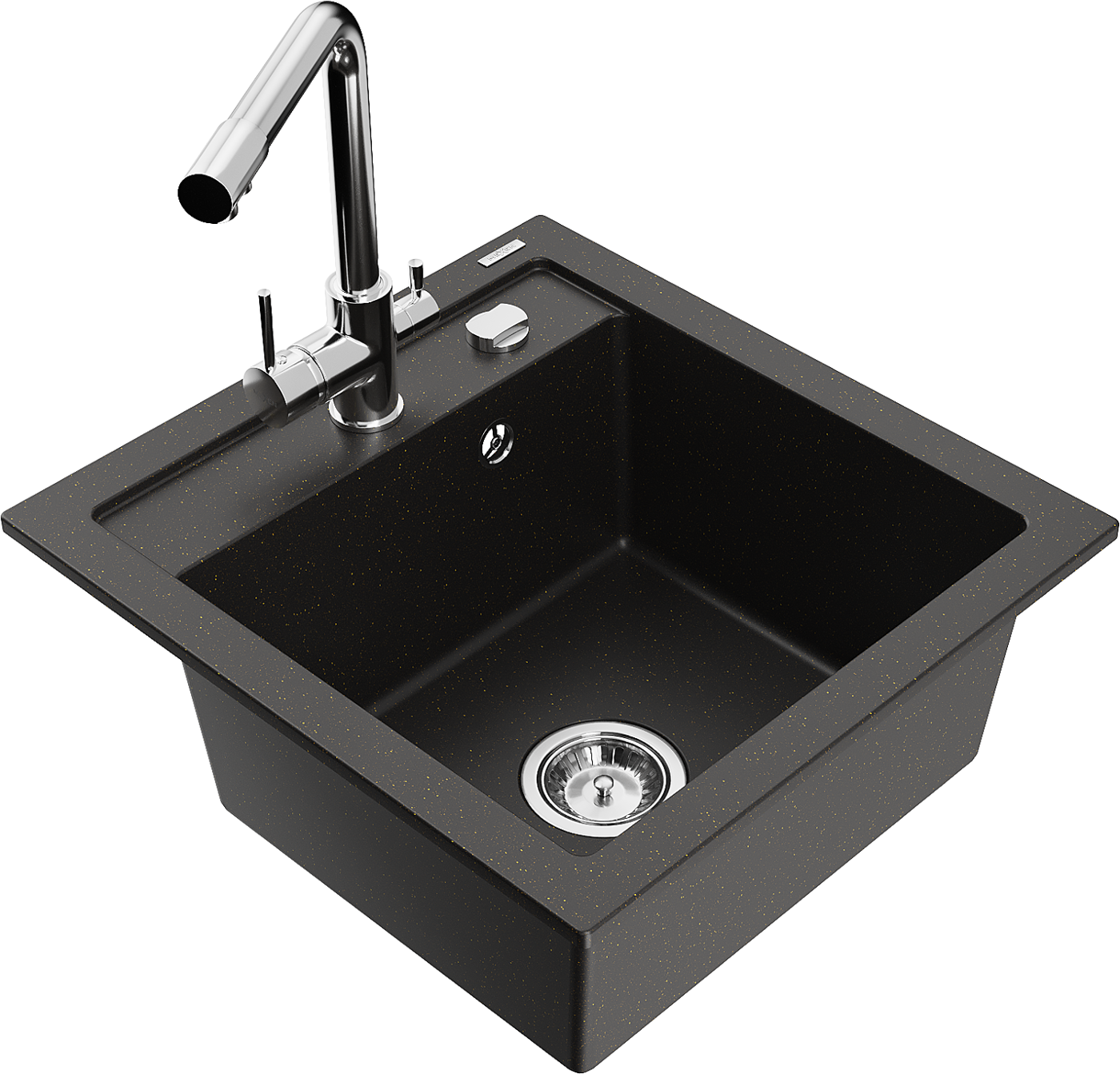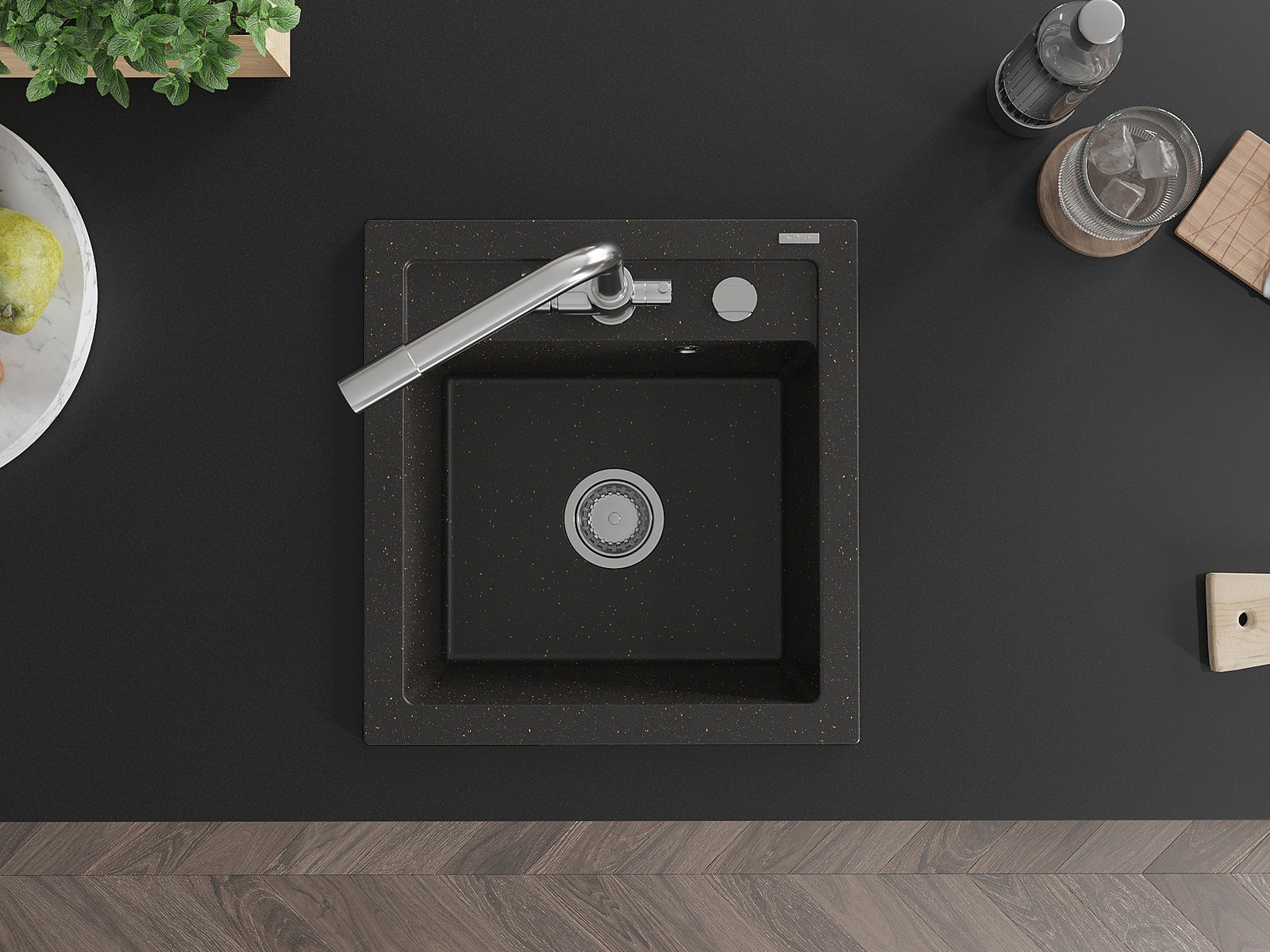 Mexen Vito гранитна кухненска мивка с една камера и смесител Duero, черен/златист металик - 6503-75-671600-00
