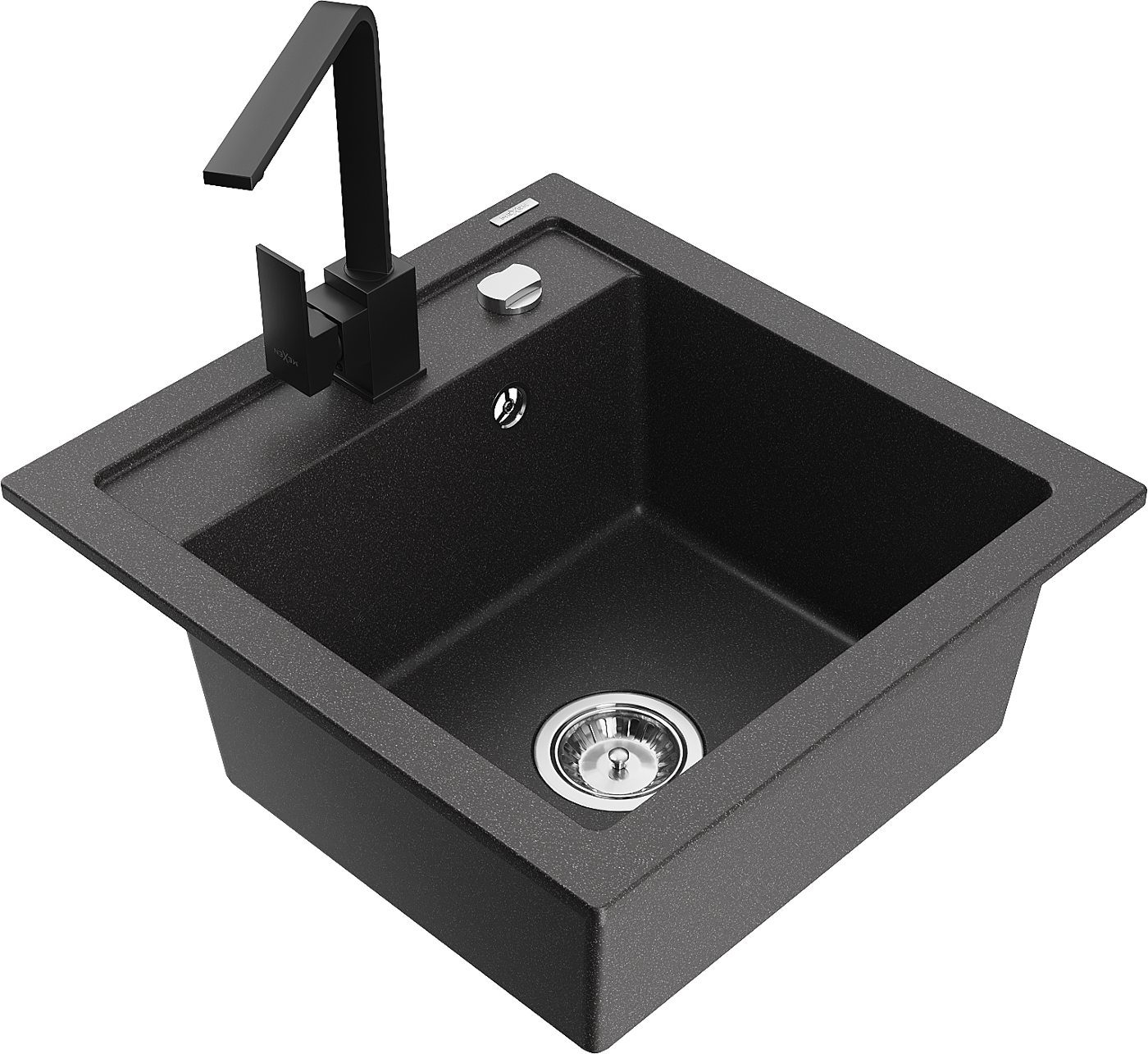 Mexen Vito кухненска мивка гранитна 1-камерна с кухненски смесител Rita, черна със спрей - 6503-76-670300-70