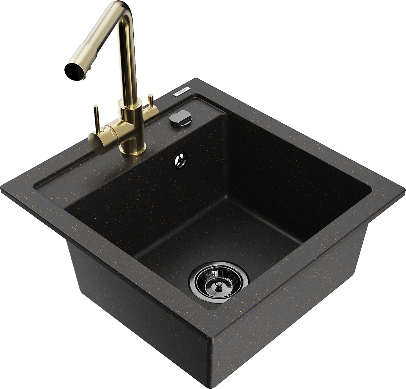 Мексен Вито, гранитна мивка с 1 отделение и кухненски смесител Дуеро, черен/златист металик - 6503-75-671600-50-B