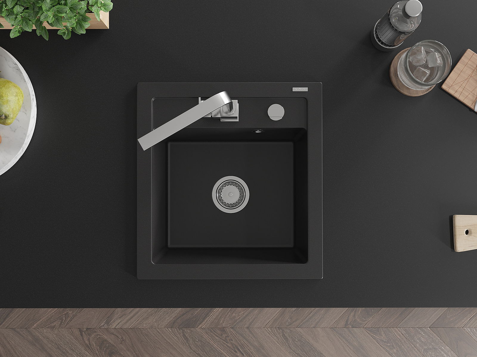 Мивката разполага с предварително издълбан отвор с диаметър 35 мм за самостоятелно изключване. Може да се използва, наред с други неща, за монтаж на дозатор за течност, който ще елиминира наличието на пластмасови бутилки в кухнята и ще й придаде елегантно завършване.
