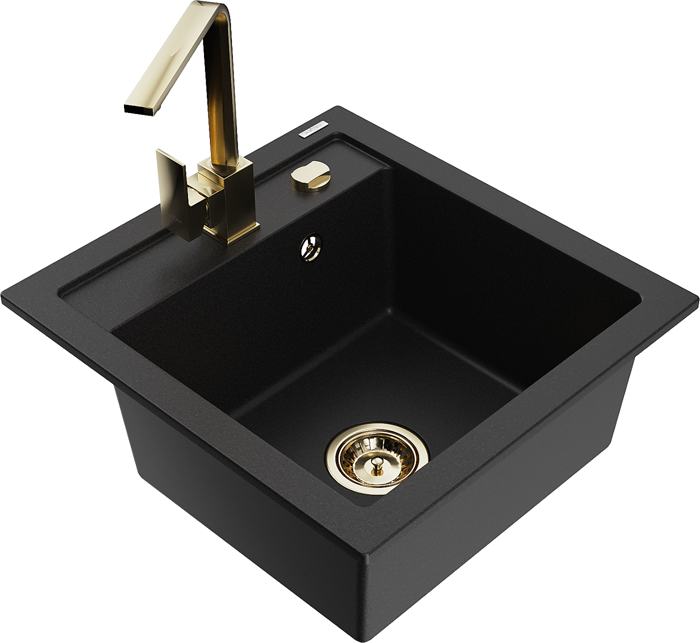 Mexen Vito гранитна мивка с 1 камера и кухненски кран Rita, черен - 6503-77-670300-50