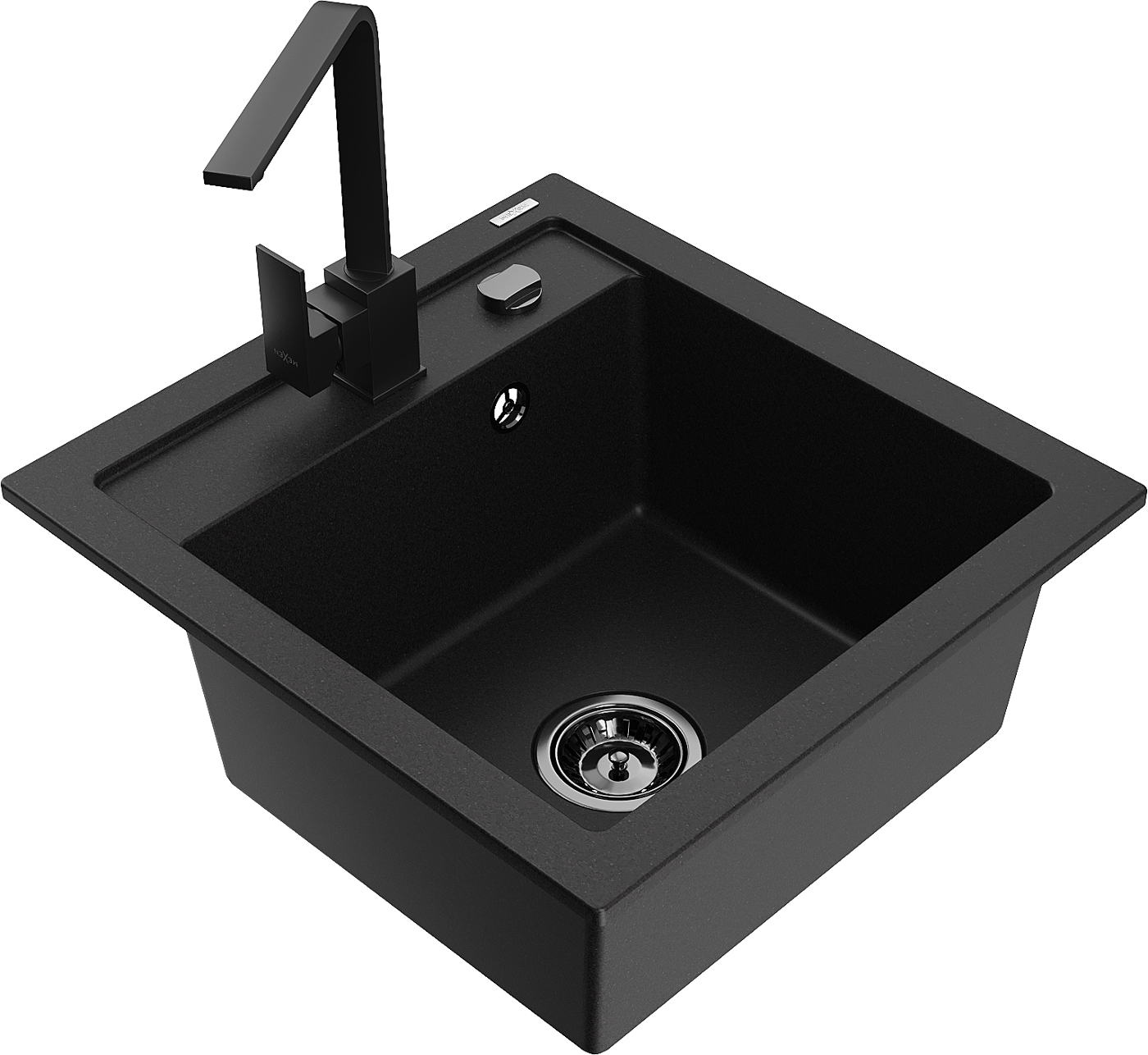 Mexen Vito гранитна мивка с 1 корито и кухненски смесител Rita, черен