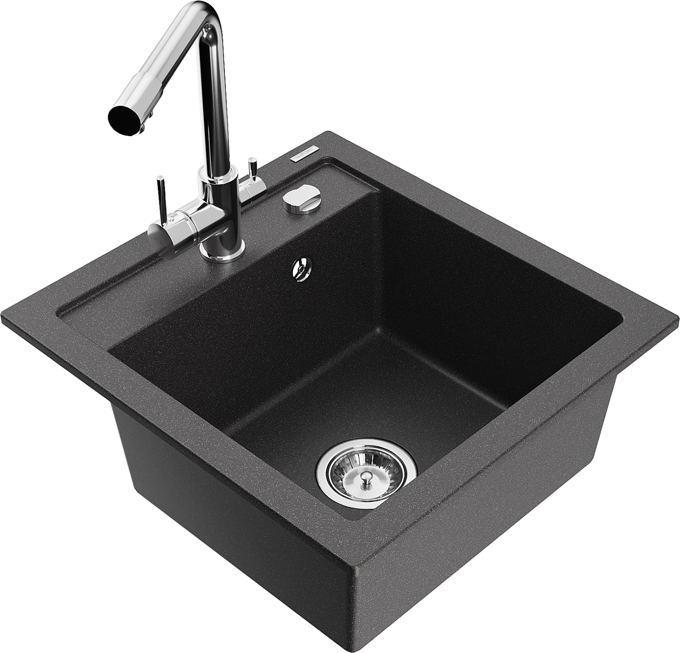 Mexen Vito гранитна кухненска мивка с едно корито и кухненски смесител Duero,