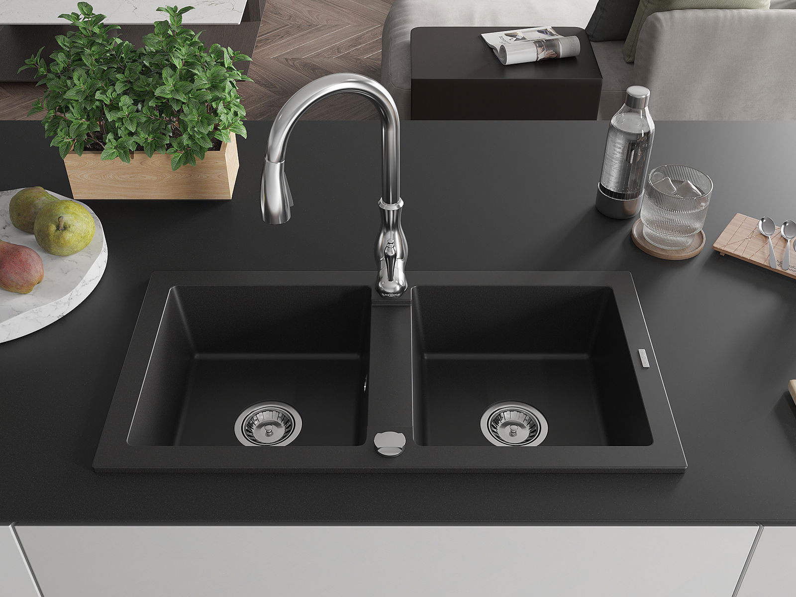 Мивката е направена от висококачествен гранит. Това е елегантно и най -вече практично допълнение към всяка кухня, независимо от нейния стил. Висококачествената и гранитна издръжливост осигуряват много години употреба.