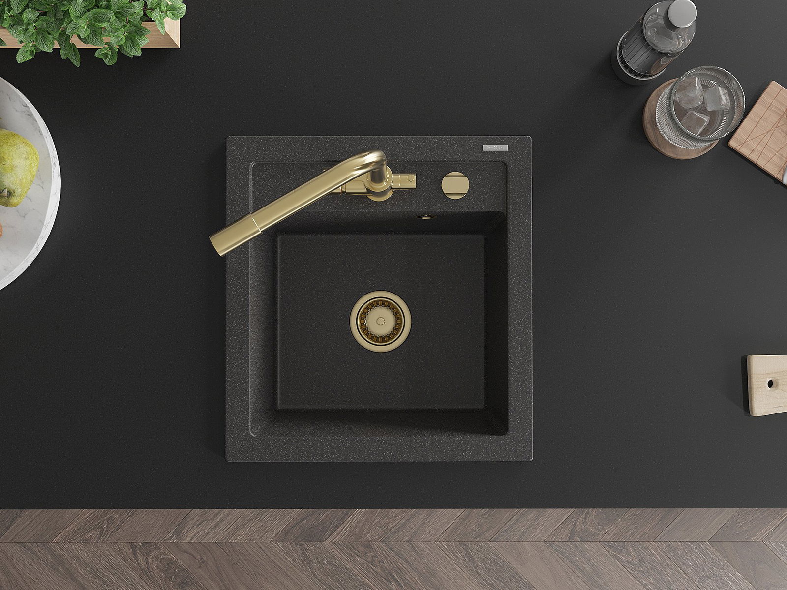 Mexen Vito гранитна кухненска мивка с 1 отделение с кухненски смесител Duero,