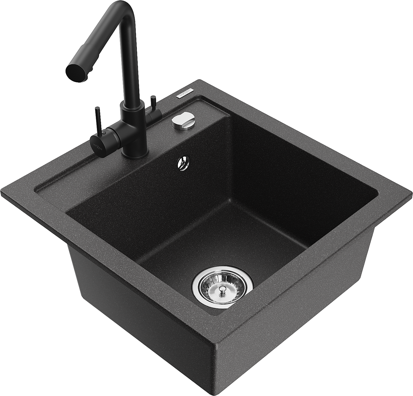 Mexen Vito гранитна мивка с 1 отделение и кухненски смесител Duero, черен на петна - 6503-76-671600-70
