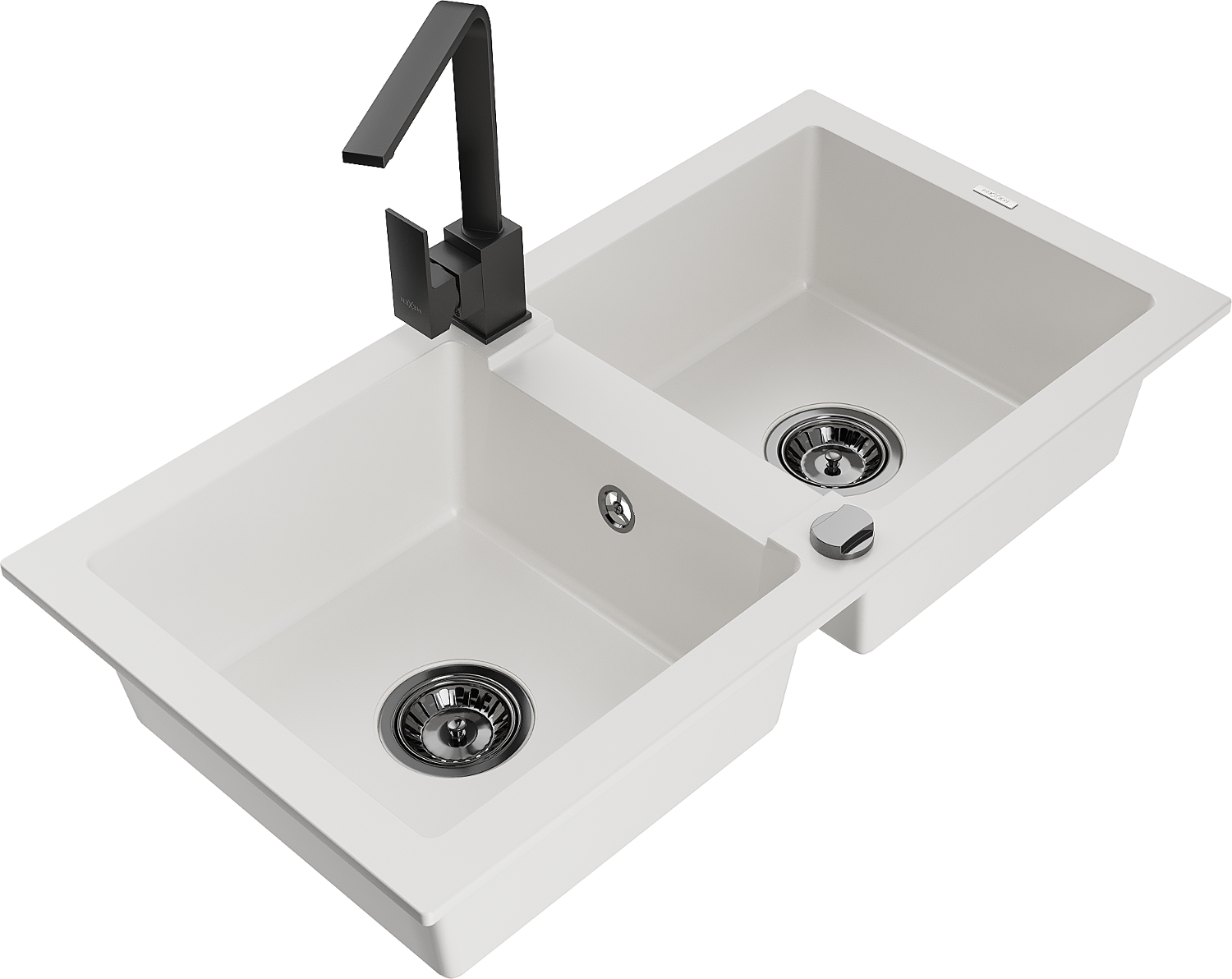 Mexen Mario гранитна мивка с 2 отделения и кухненски смесител Rita, бял - 6504-20-670300-70