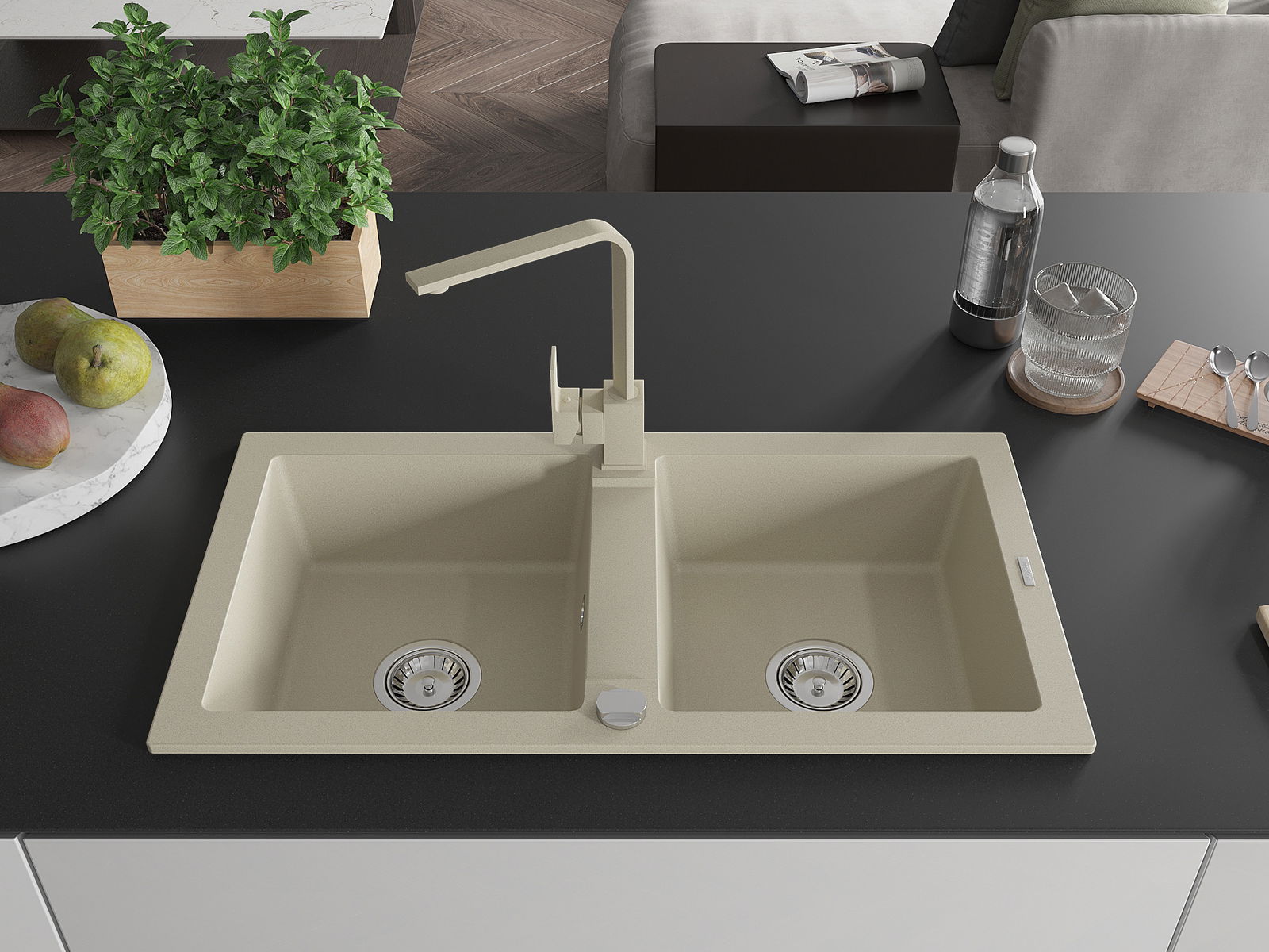 Повърхността на мивката е устойчива на петна и обезцветяване, благодарение на които е лесно да се почиства и запазва цвета си за дълго време. Естетически и практически допълващи всяка кухня.