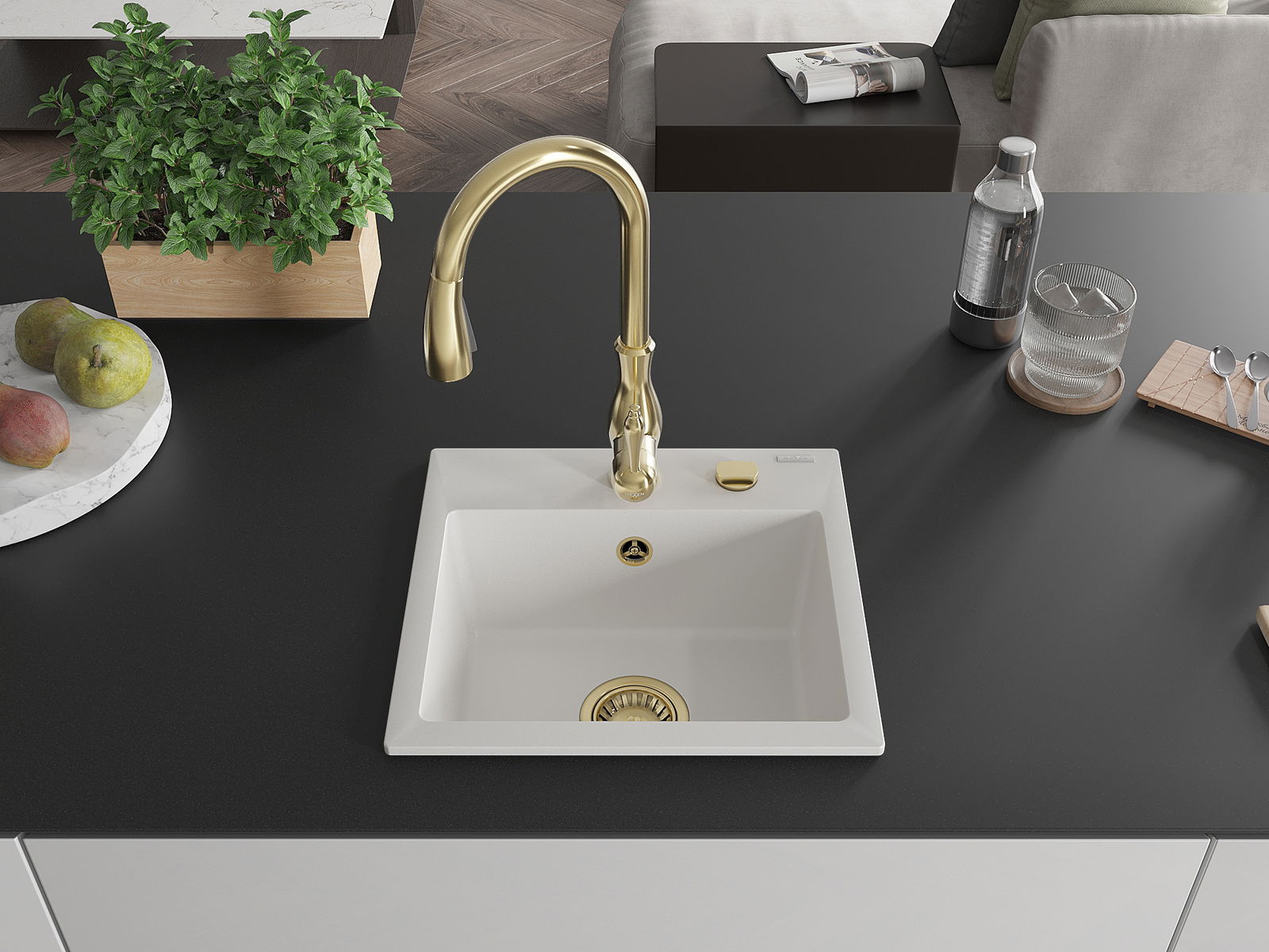 Мивката е направена от висококачествен гранит. Това е елегантно и най -вече практично допълнение към всяка кухня, независимо от нейния стил. Висококачествената и гранитна издръжливост осигуряват много години употреба.