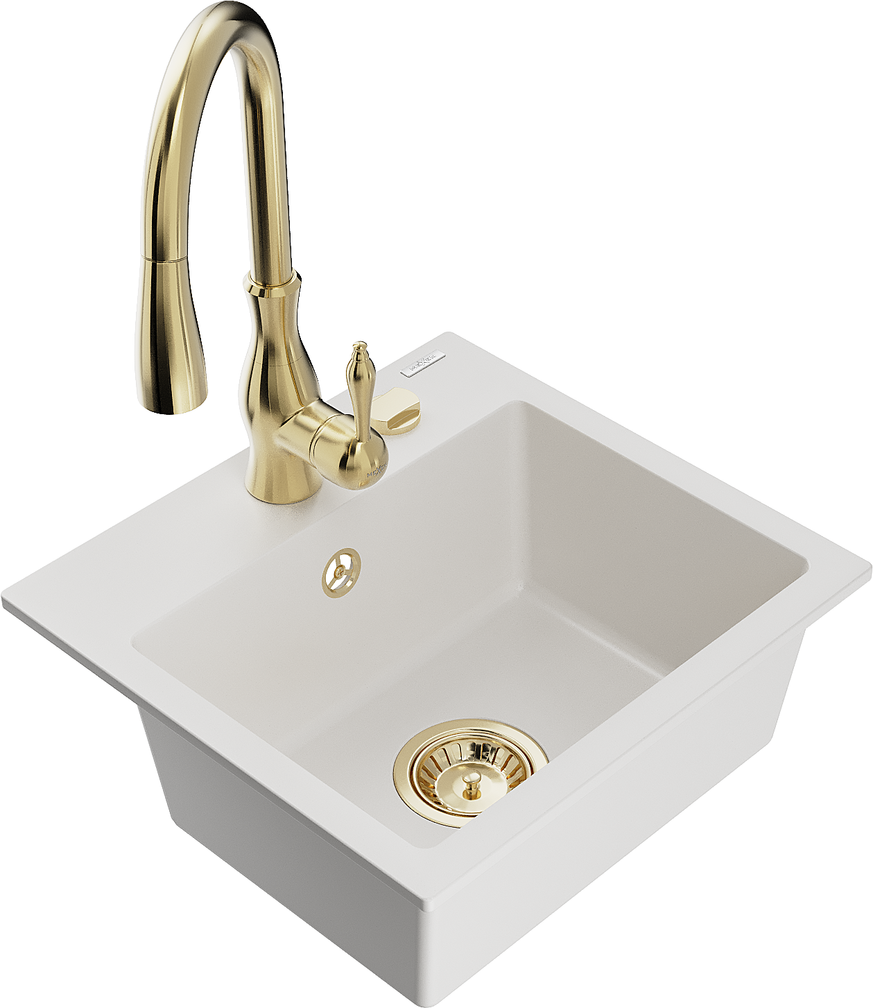 Mexen Milo кухненска мивка от гранит, 1-камерна с кухненски смесител Savita, бял - 6505-20-672601-50