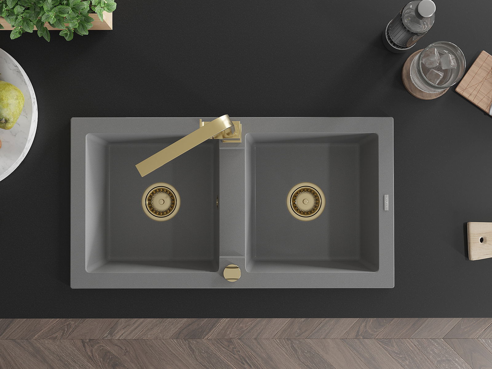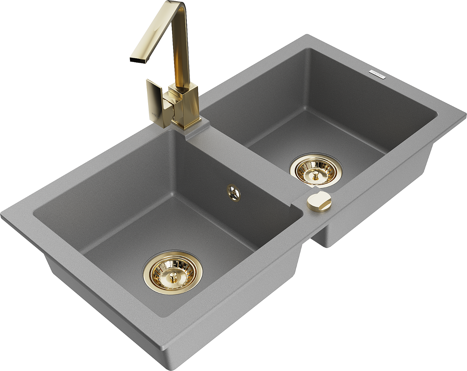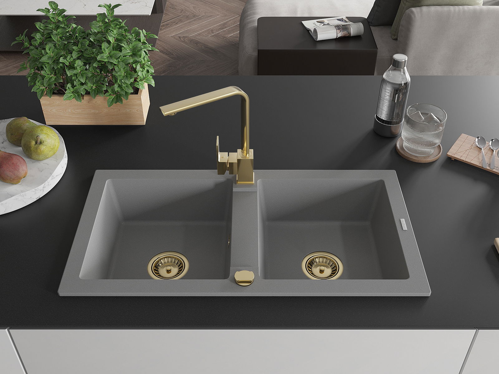 Mexen Mario двоен мивка от гранит с кухненски смесител Rita, сив - 6504-71-670300-50