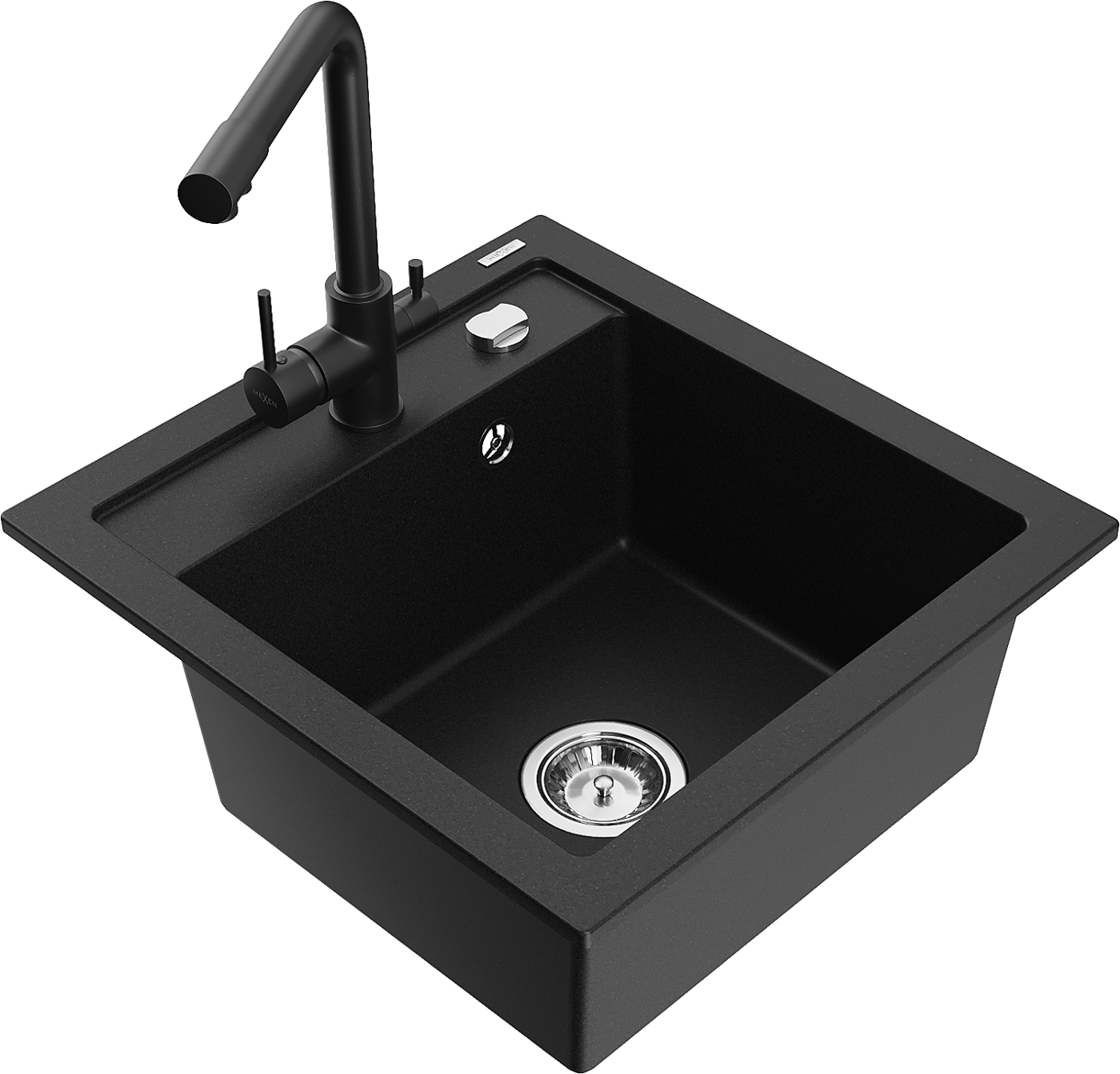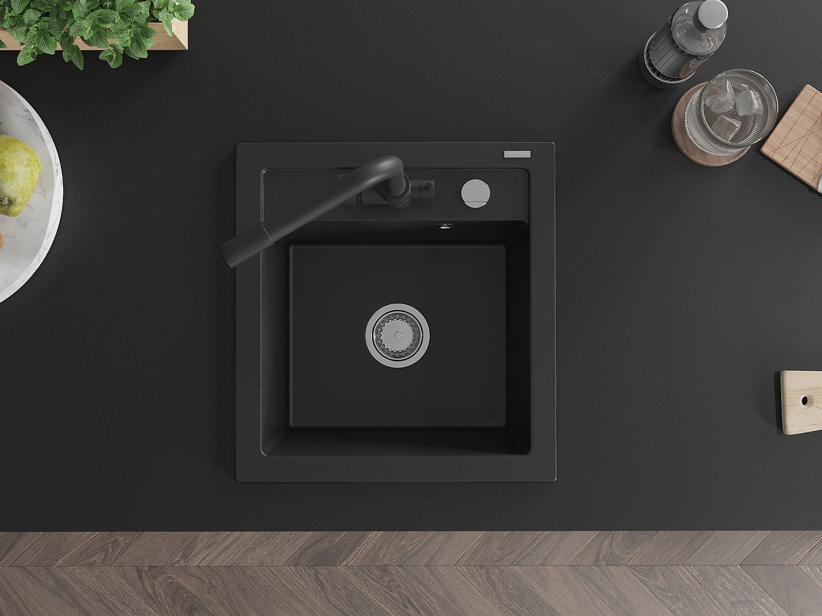 Mexen Vito мивка от гранит с 1 камера и кухненски смесител Duero, черен - 6503-77-671600-70