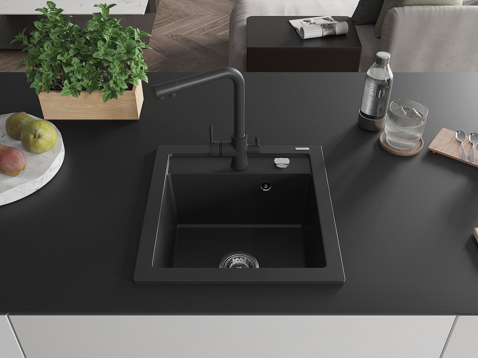 Мивката е направена от висококачествен гранит. Това е елегантно и най -вече практично допълнение към всяка кухня, независимо от нейния стил. Висококачествената и гранитна издръжливост осигуряват много години употреба.
