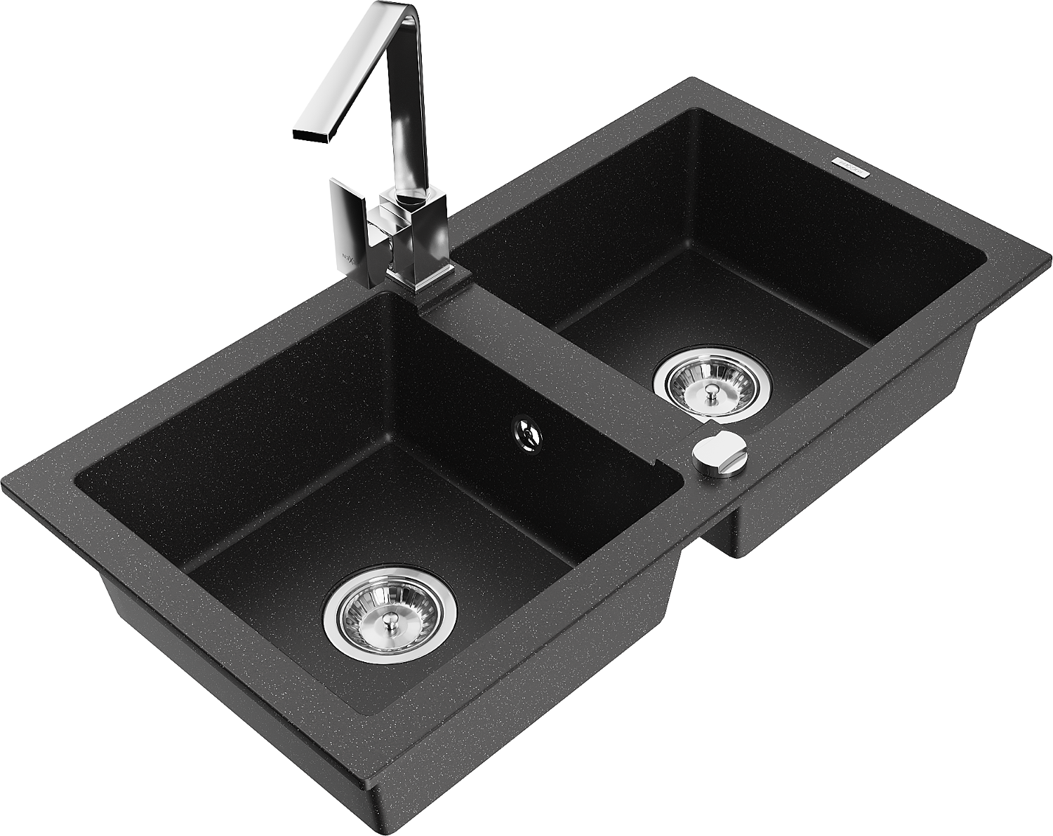 Mexen Mario гранитна мивка с две корита с кухненски смесител Rita, черен/сребърен металик - 6504-73-670300-00