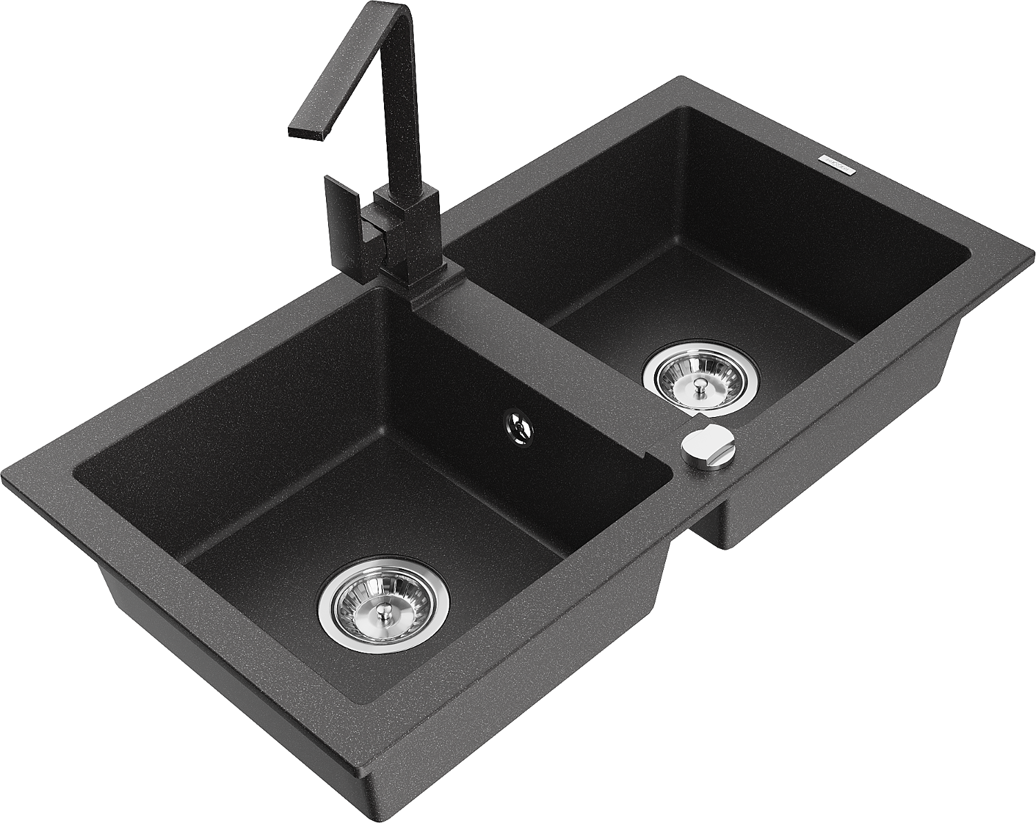 Mexen Mario гранитна мивка с 2 камери и кухненски смесител Rita, черен на пръски - 6504-76-670300-76