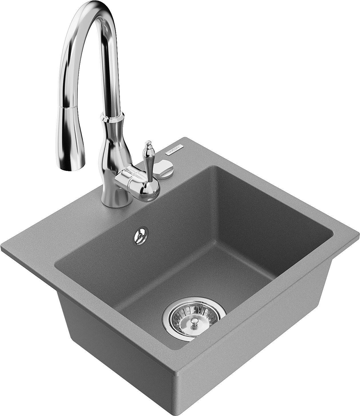 Мивка от гранит Mexen Milo с 1 камера с кухненски смесител Savita, сив - 6505-71-672601-00