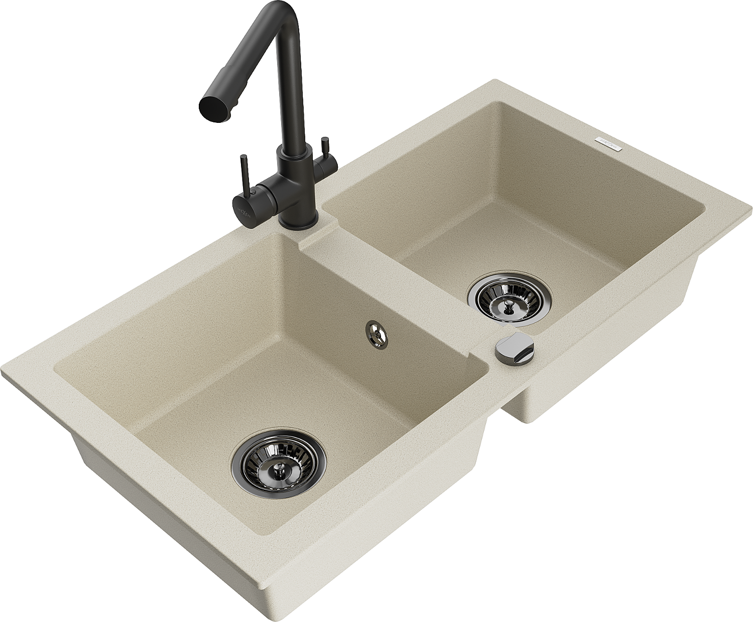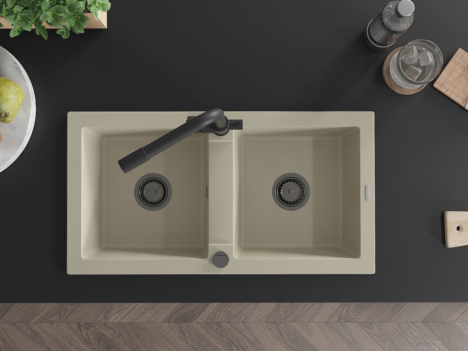 Mexen Mario кухненска мивка от гранит с 2 камери и кухненски смесител Duero, бежов - 6504-69-671600-70