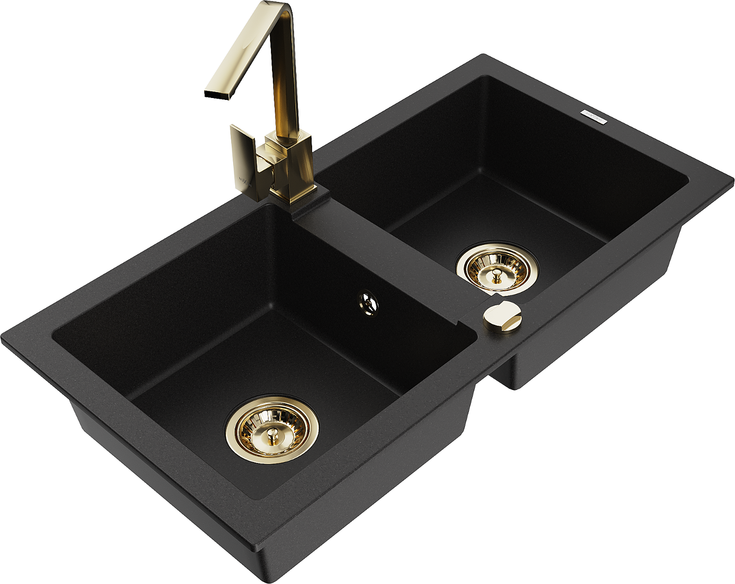 Mexen Mario гранитна мивка с 2 отделения с кухненски смесител Rita, черен - 6504-77-670300-50