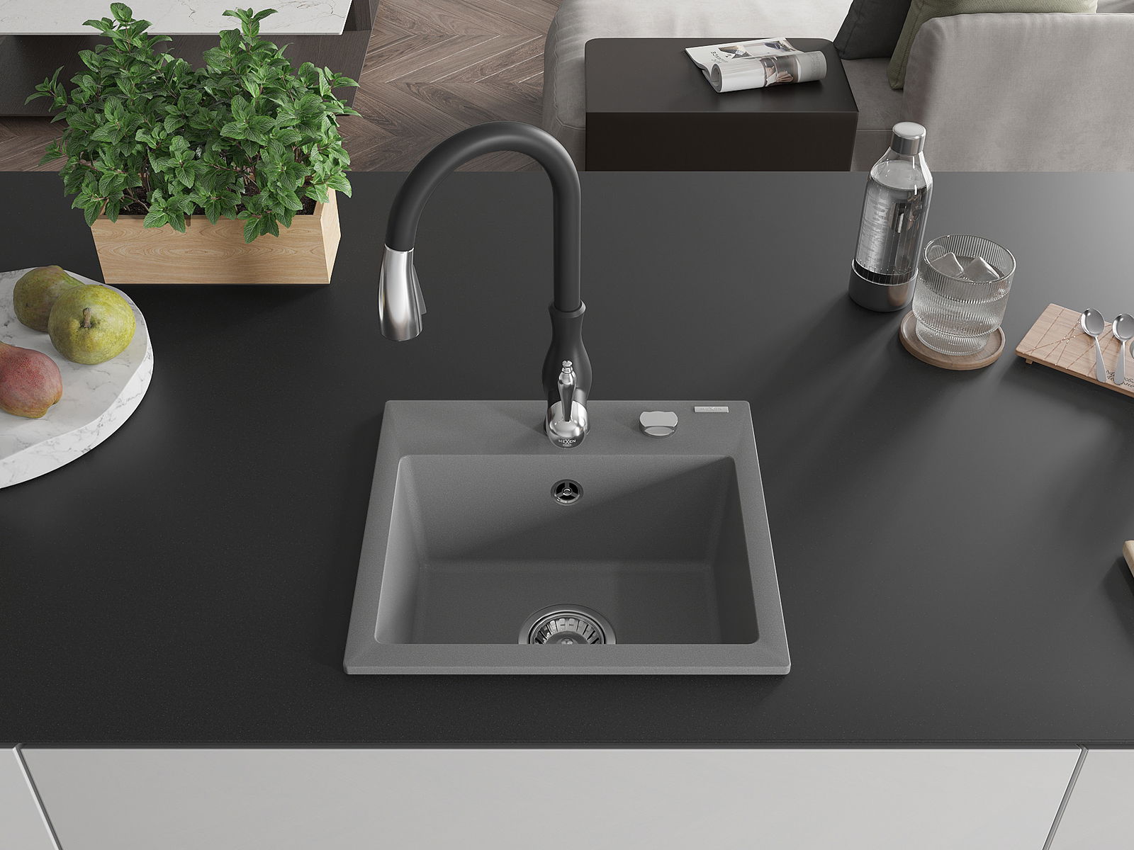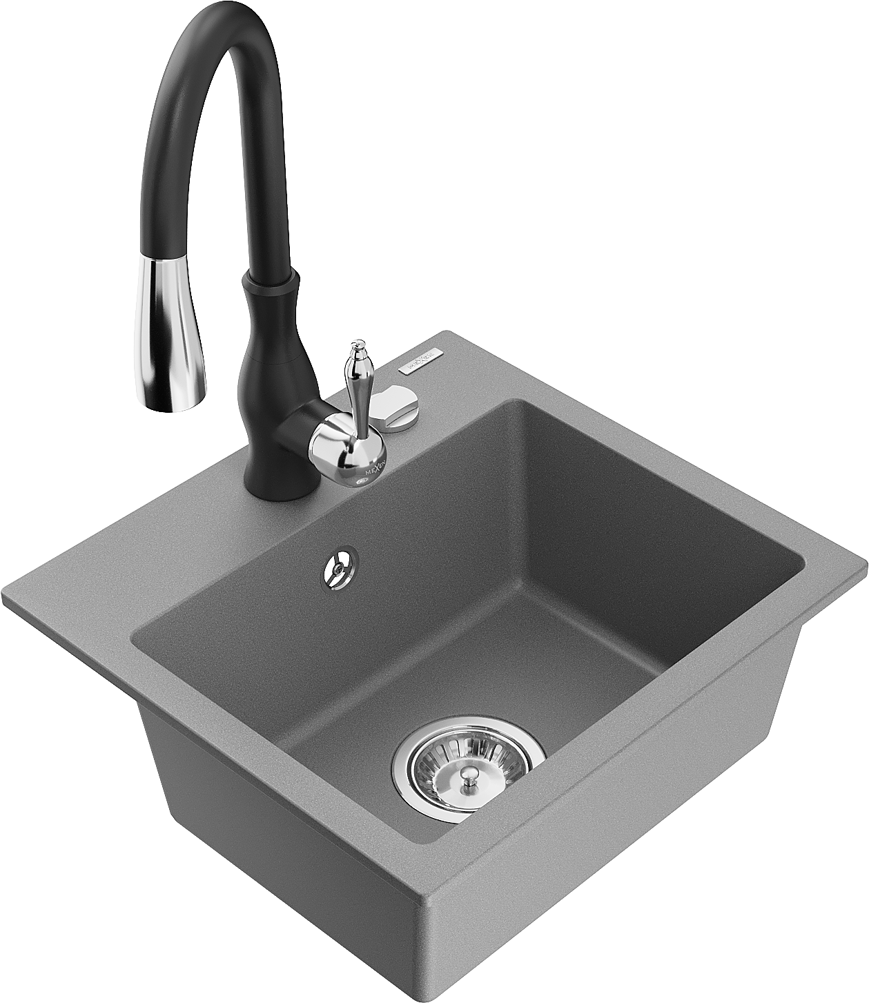 Гранитна кухненска мивка Mexen Milo с 1 отделение и кухненски смесител Savita, сив - 6505-71-672601-70