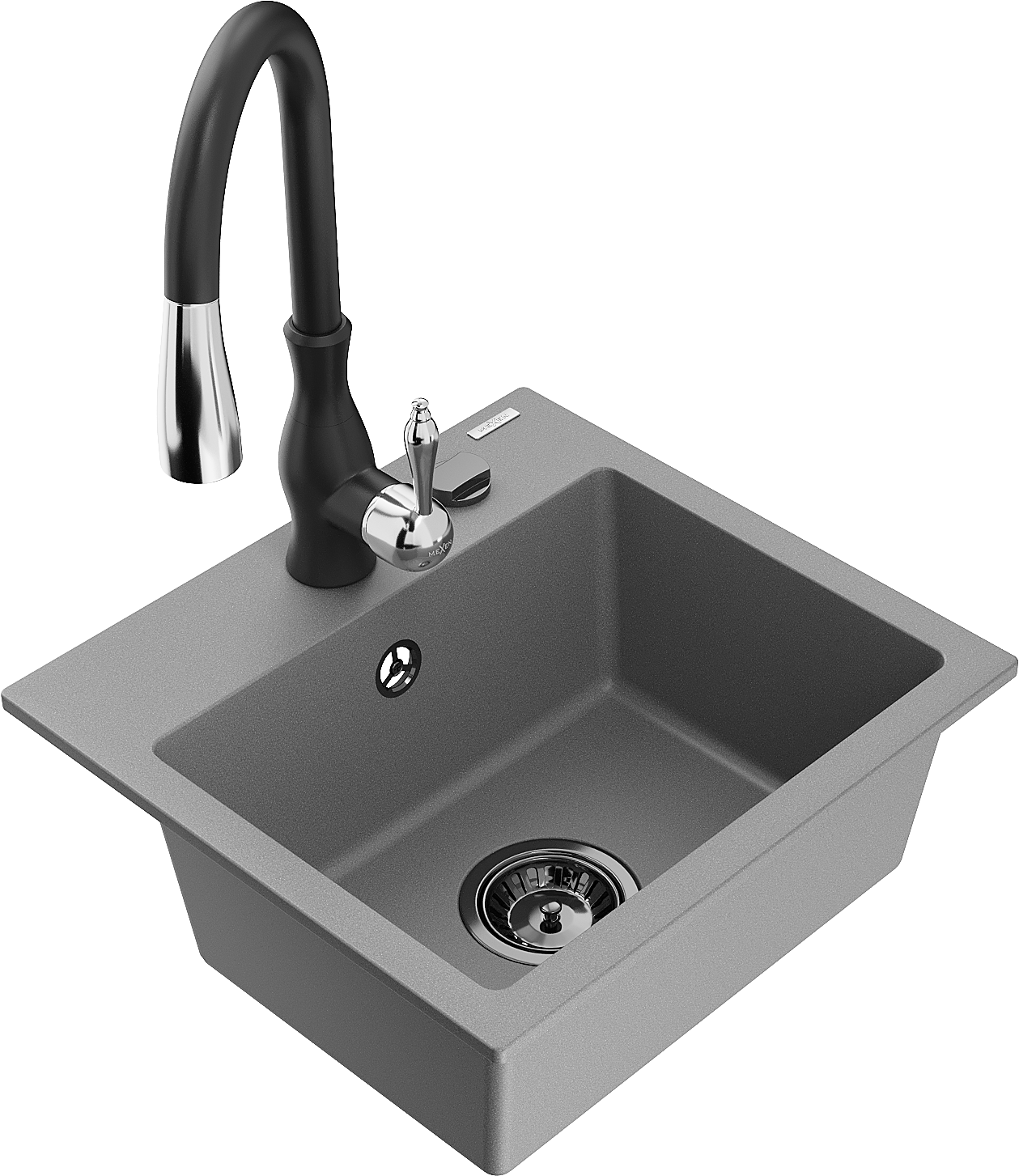 Mexen Milo гранитна мивка с 1 корито със смесител за кухня Savita, сив - 6505-71-672601-70-B