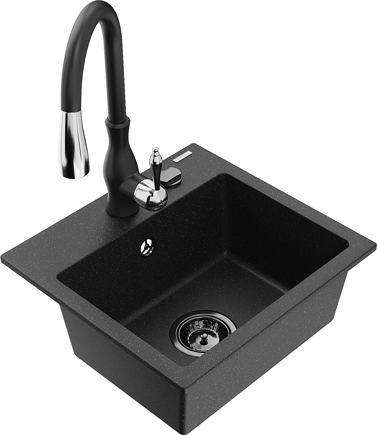 Mexen Milo мивка гранитна еднокамерна с кухненски смесител Savita, черен/сребърен металик- 6505-73-672601-70-B