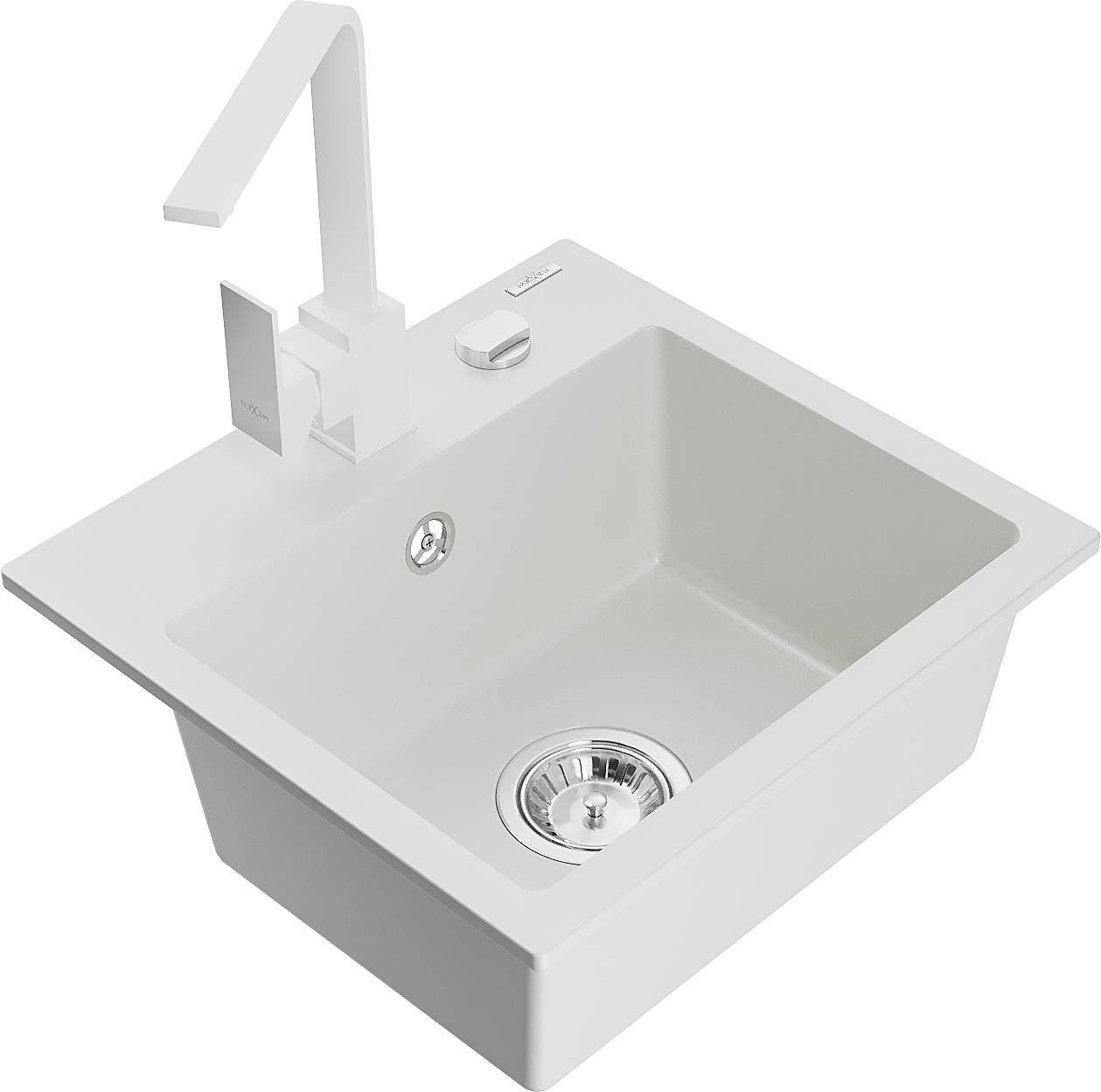 Mexen Milo гранитна кухненска мивка с 1 отделение и батерия Rita, бял - 6505-20-670300-20