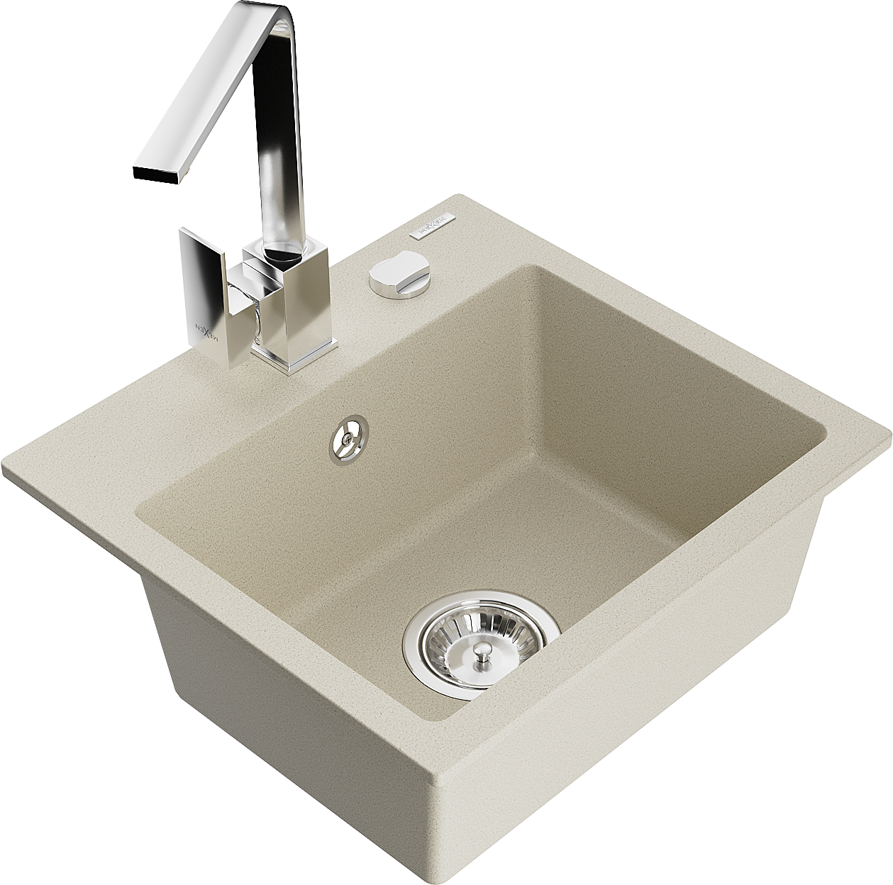 Mexen Milo мивка за кухня от гранит с 1 отделение и кухненски смесител Rita, бежов - 6505-69-670300-00