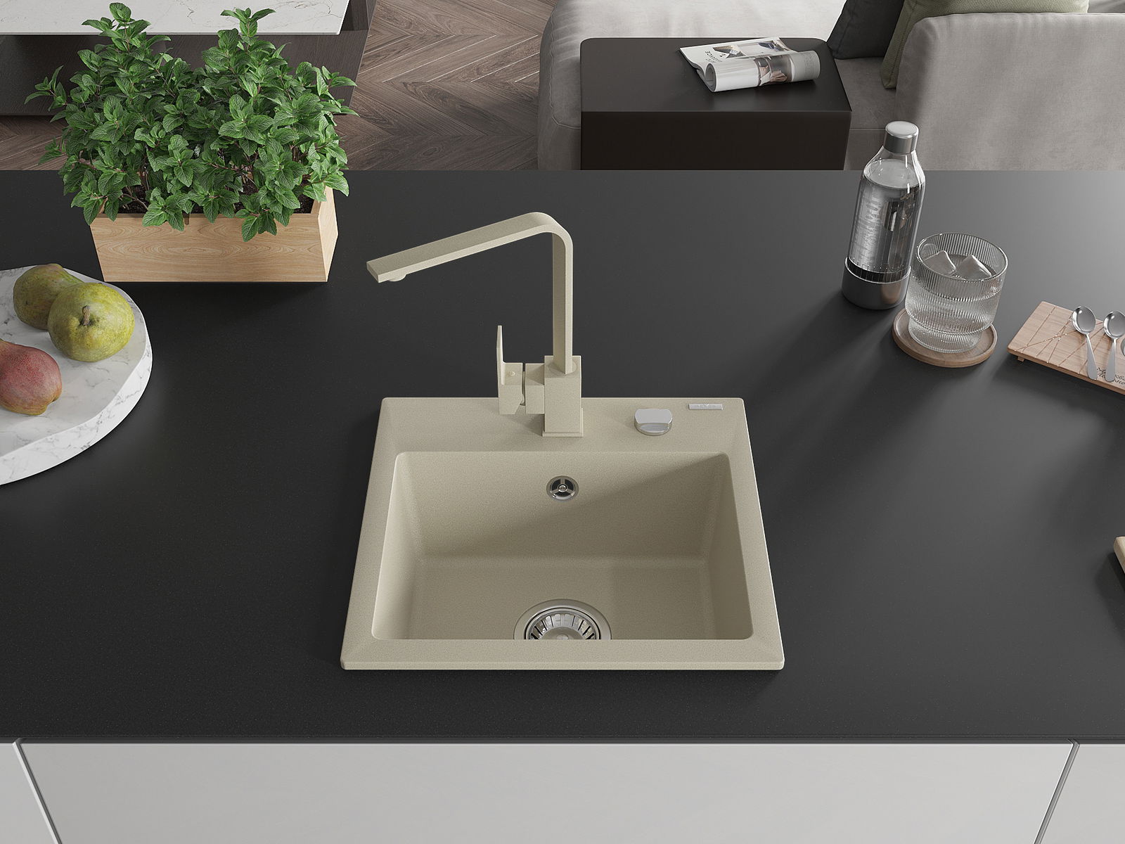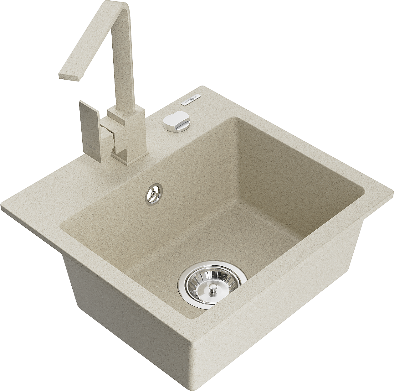 Mexen Milo гранитна кухненска мивка с 1 отделение и кухненски смесител Rita, бежов - 6505-69-670300-69