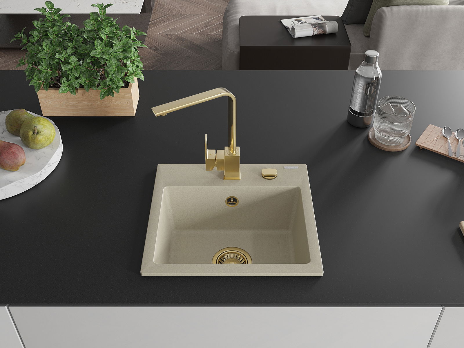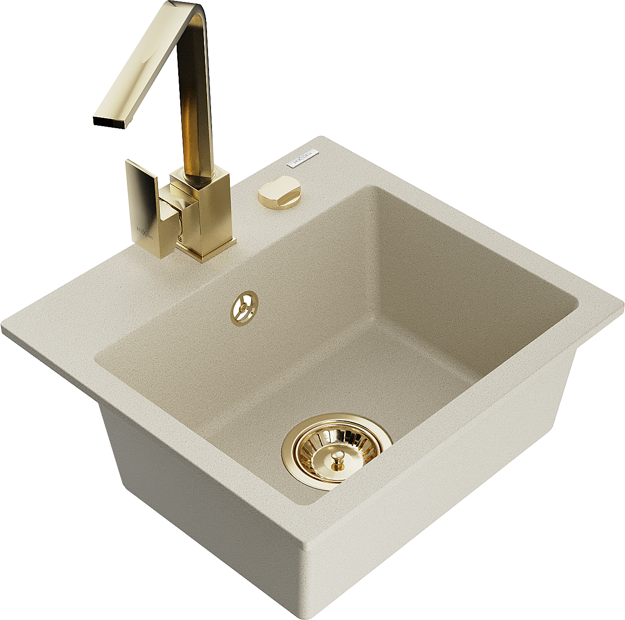 Mexen Milo гранитна мивка с 1 корито с кухненски смесител Рита, бежова