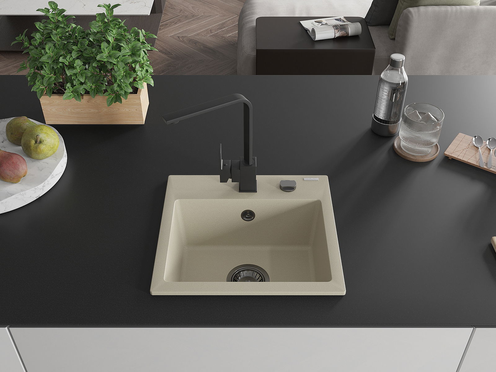 Мивката е направена от висококачествен гранит. Това е елегантно и най -вече практично допълнение към всяка кухня, независимо от нейния стил. Висококачествената и гранитна издръжливост осигуряват много години употреба.