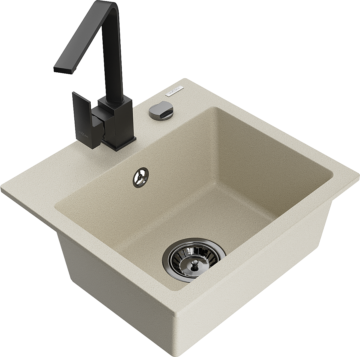 Mexen Milo мивка с 1 отделение с кухненски смесител Rita, бежов - 6505-69-670300-70