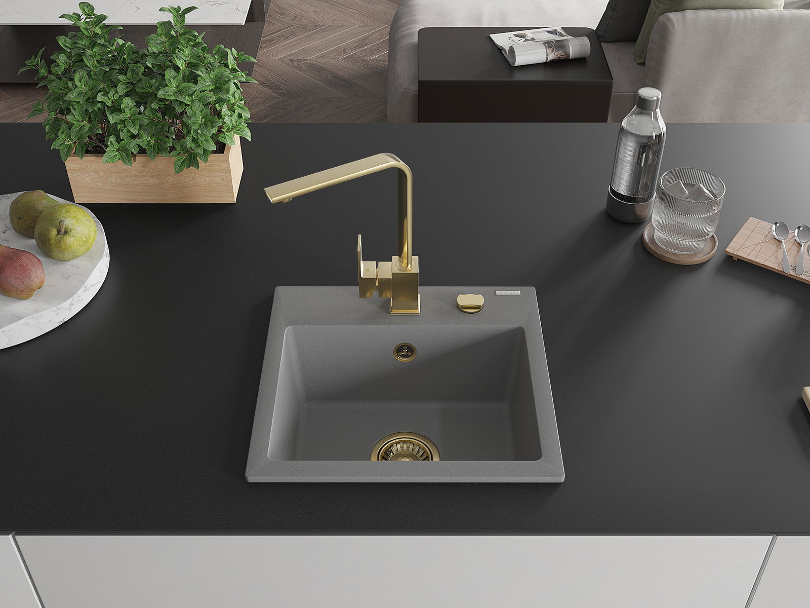 Мивката е направена от висококачествен гранит. Това е елегантно и най -вече практично допълнение към всяка кухня, независимо от нейния стил. Висококачествената и гранитна издръжливост осигуряват много години употреба.
