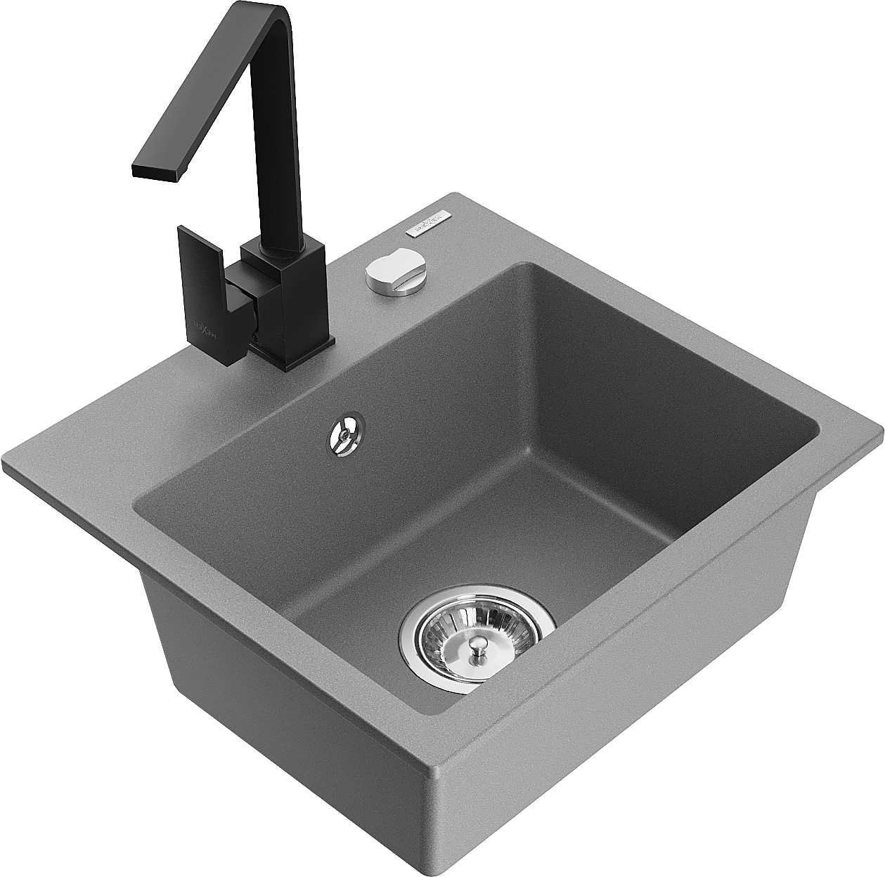 Mexen Milo кухненска мивка от гранит с една камера с кухненски смесител Rita, сив - 6505-71-670300-70