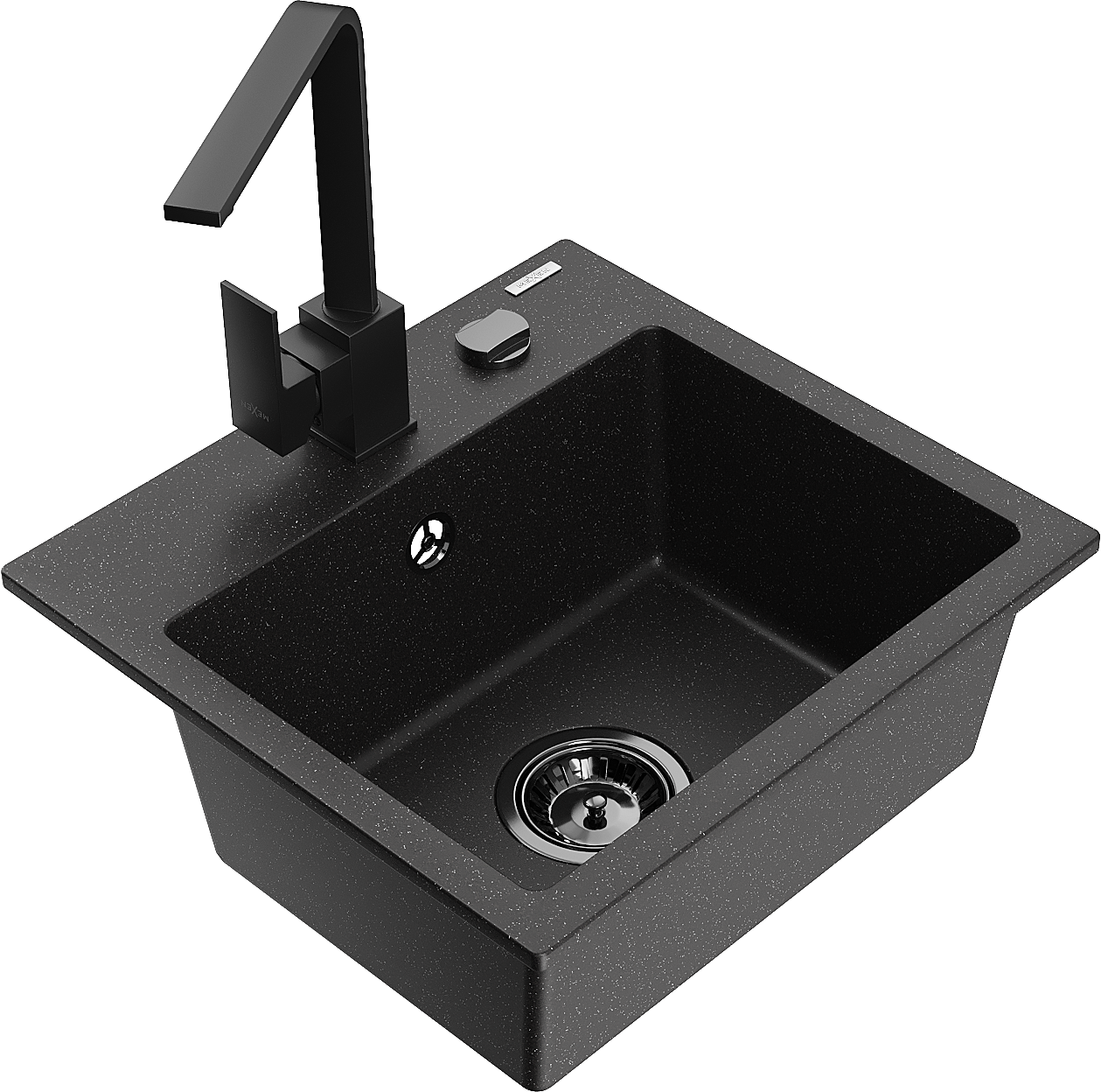 Mexen Milo гранитна мивка с 1 отделение с кухненски смесител Rita, черен/сребърен металик - 6505-73-670300-70-B