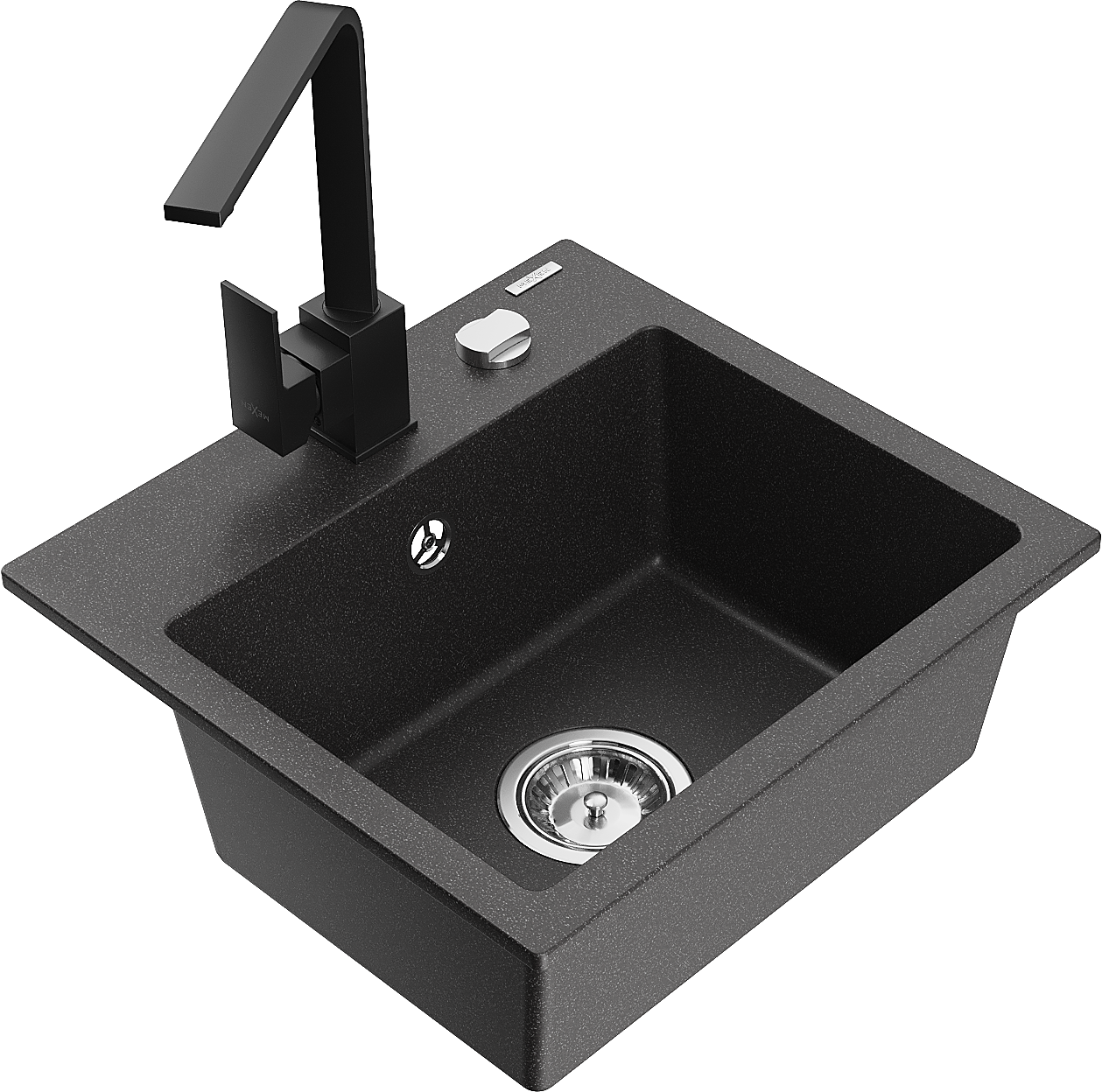 Mexen Milo гранитна кухненска мивка с 1 отделение с кухненски смесител Rita, черен на петна - 6505-76-670300-70