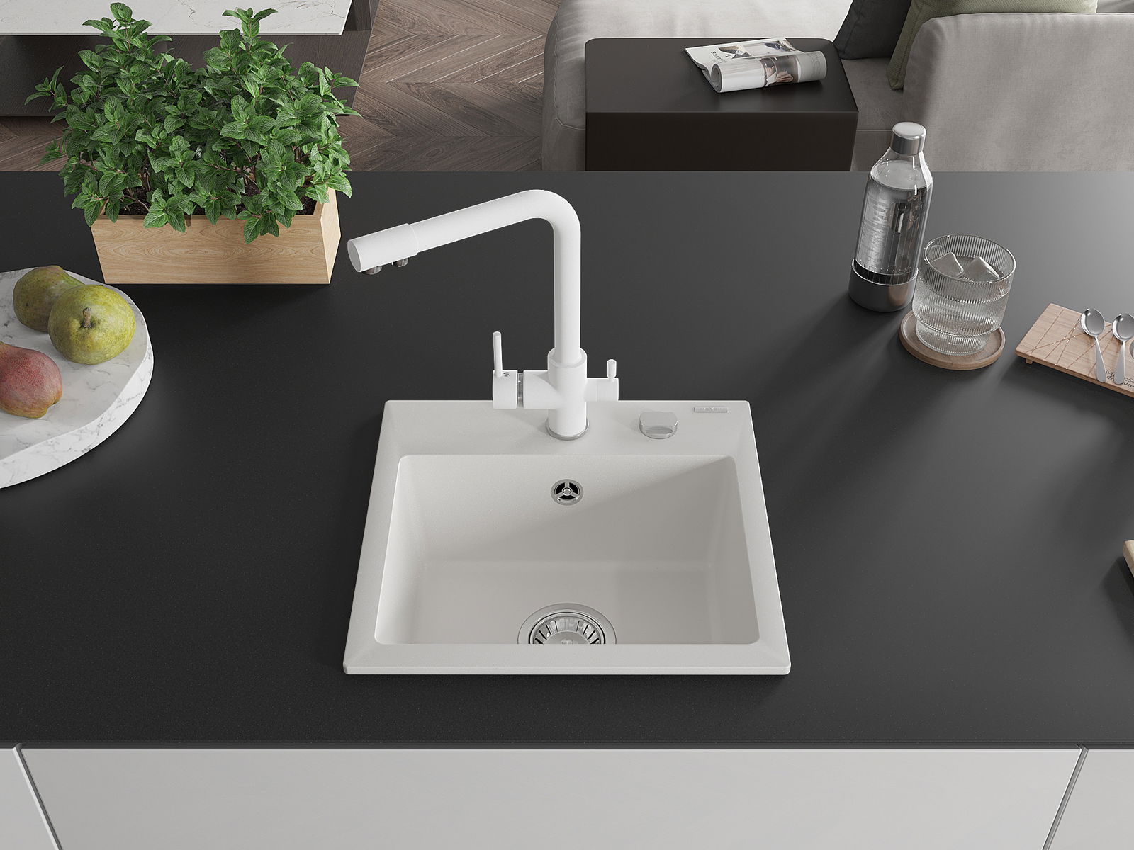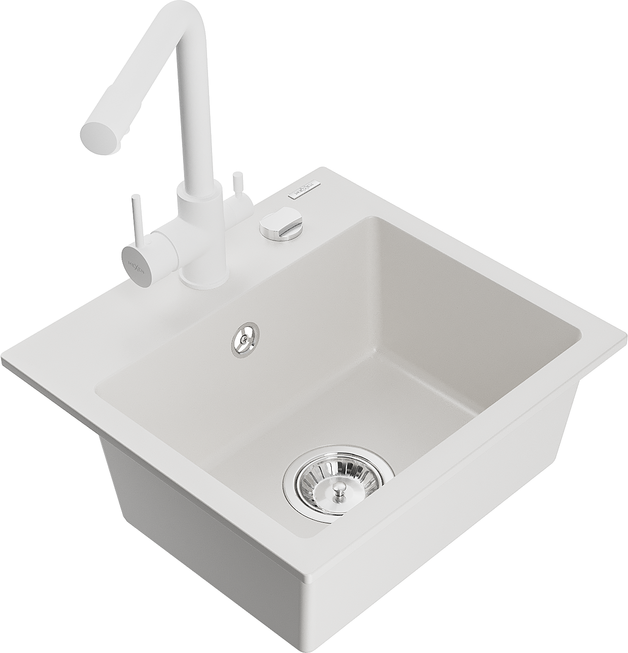 Mexen Milo мивка от гранит с 1 отделение и кухненски смесител Duero, бял - 6505-20-671600-20