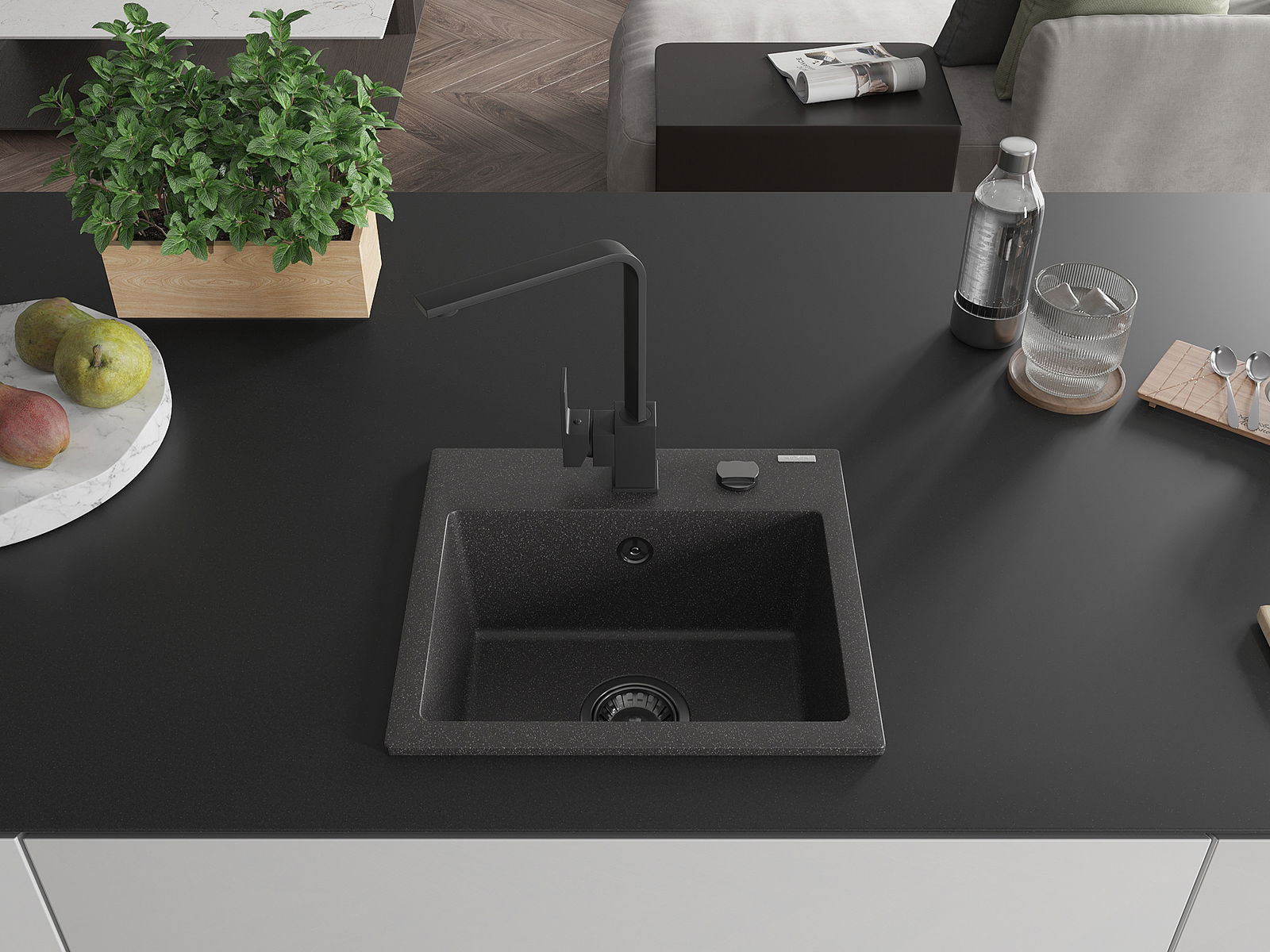 Мивката е направена от висококачествен гранит. Това е елегантно и най -вече практично допълнение към всяка кухня, независимо от нейния стил. Висококачествената и гранитна издръжливост осигуряват много години употреба.