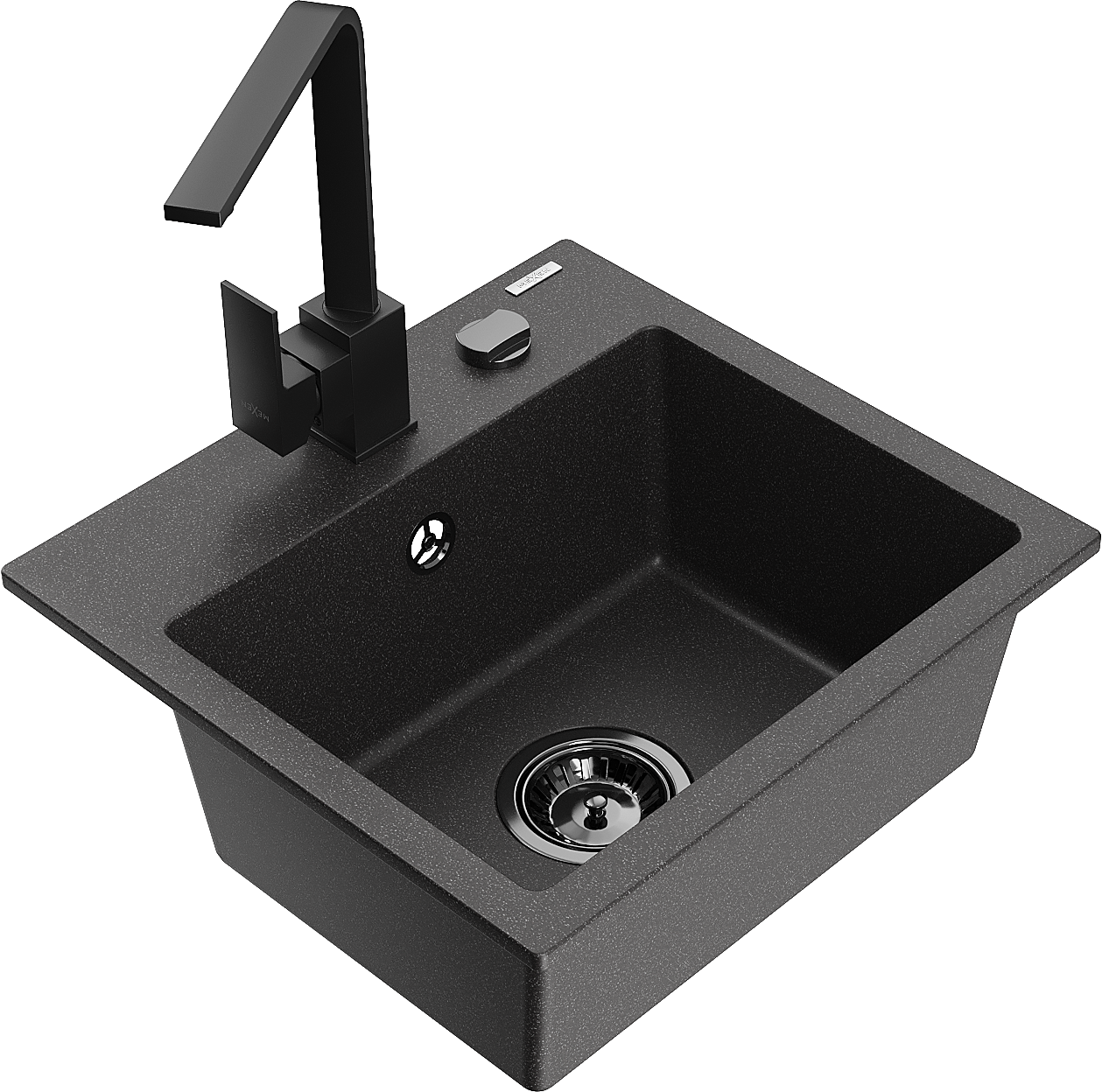 Mexen Milo гранитна мивка с 1 отделение и кухненски смесител Rita, черен на пръски - 6505-76-670300-70-B