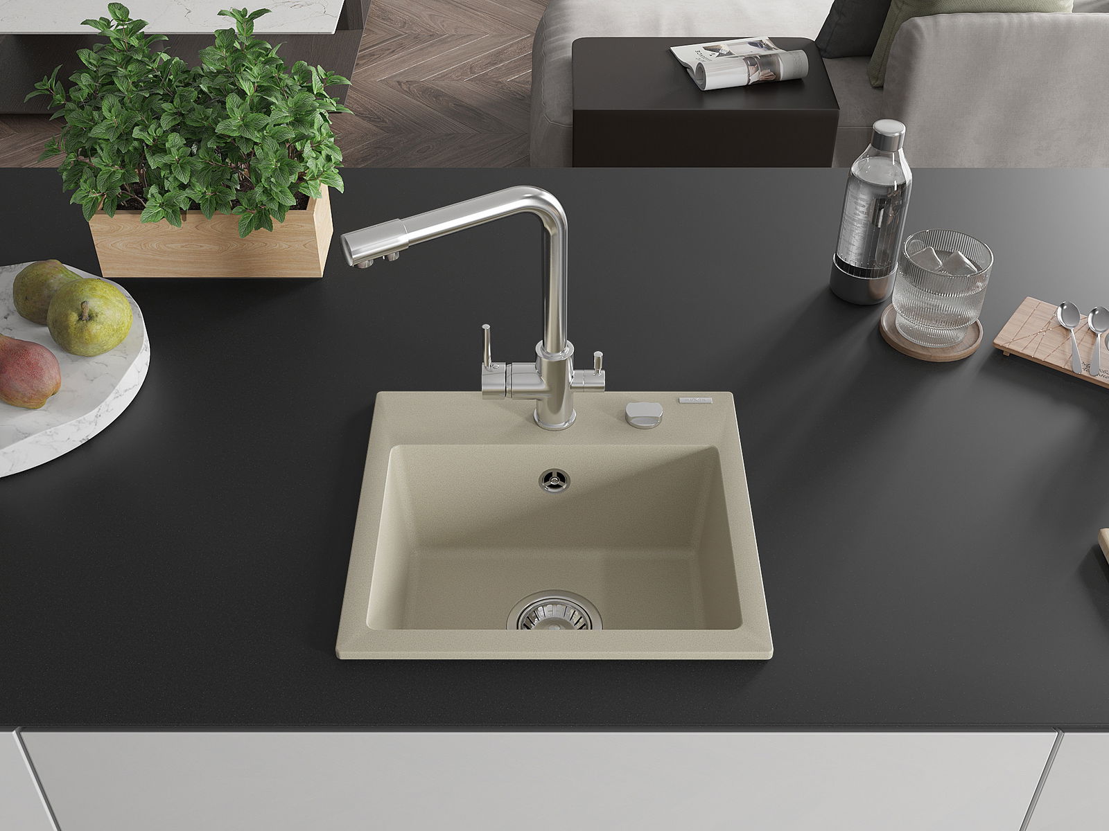 Повърхността на мивката е устойчива на петна и оцветявания, благодарение на което е лесна за поддържане на чистота и запазва цвета си за дълго време на употреба. Естетично и практично допълнение към всяка кухня.