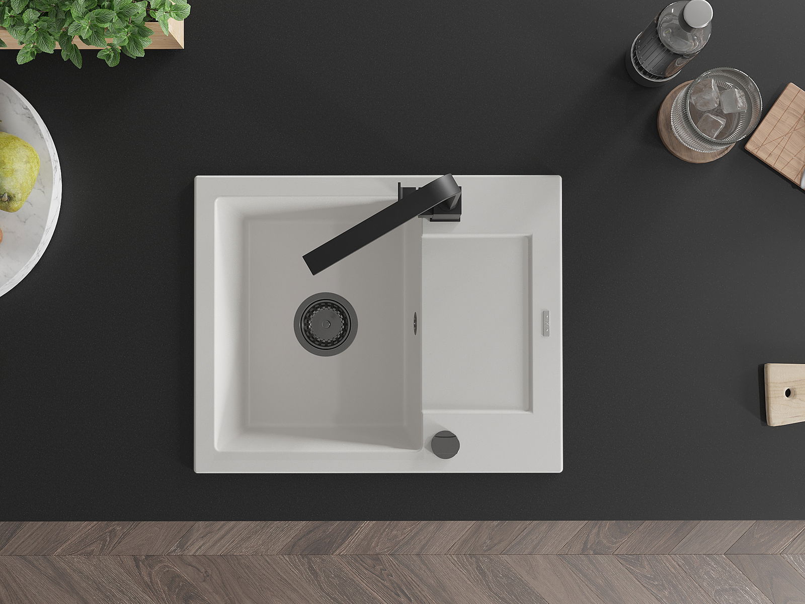 Мивката е направена от висококачествен гранит. Това е елегантно и най -вече практично допълнение към всяка кухня, независимо от нейния стил. Висококачествената и гранитна издръжливост осигуряват много години употреба.