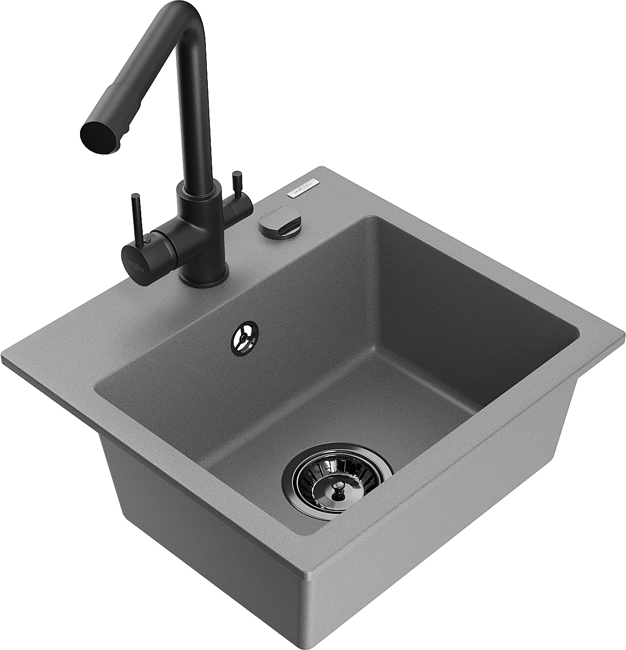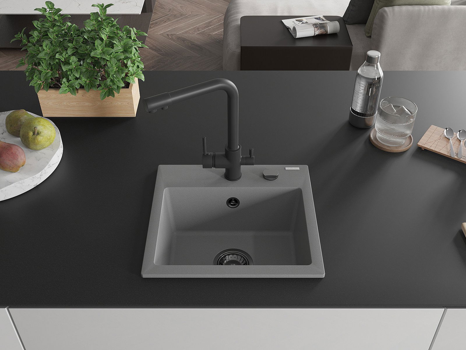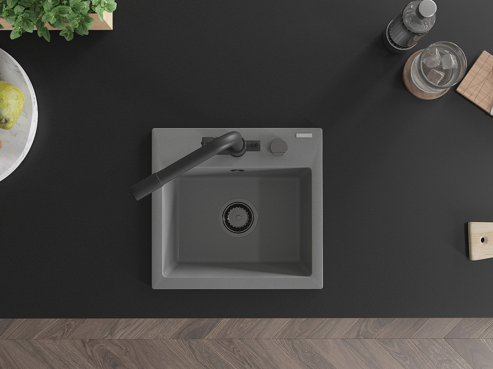 Mexen Milo гранитна мивка с 1 камера с кухненски смесител Duero, сив
