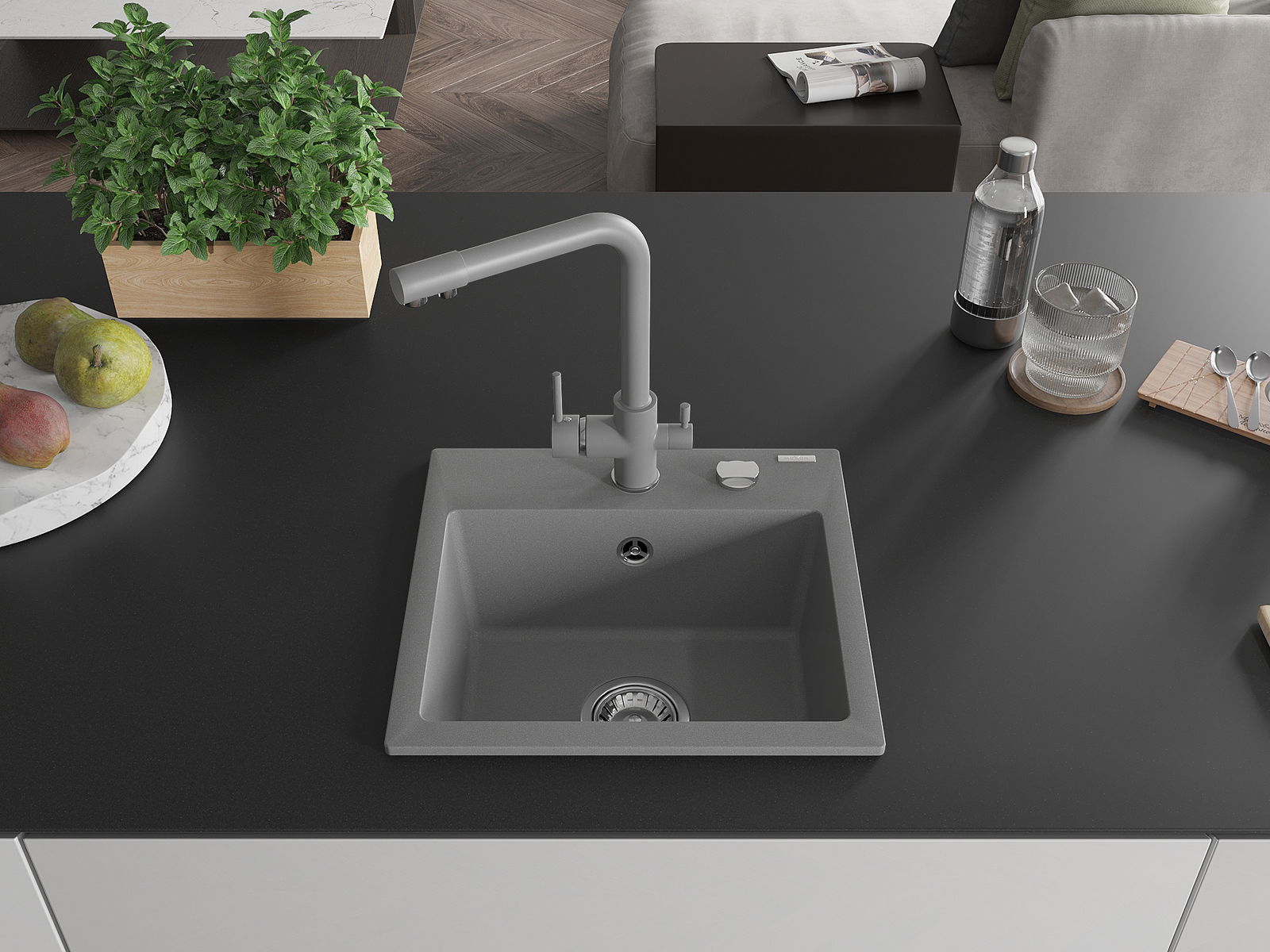 Mexen Milo гранитна мивка с 1 отделение и кухненски смесител Duero, сива - 6505-71-671600-71