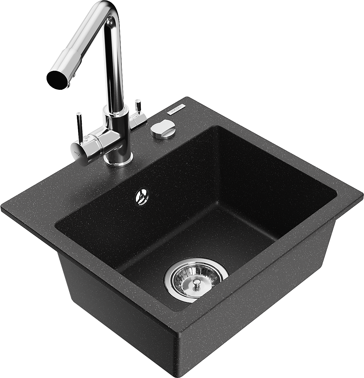 Mexen Milo гранитна кухненска мивка с 1 корито с кухненски смесител Duero, черен/сребърен металик - 6505-73-671600-00