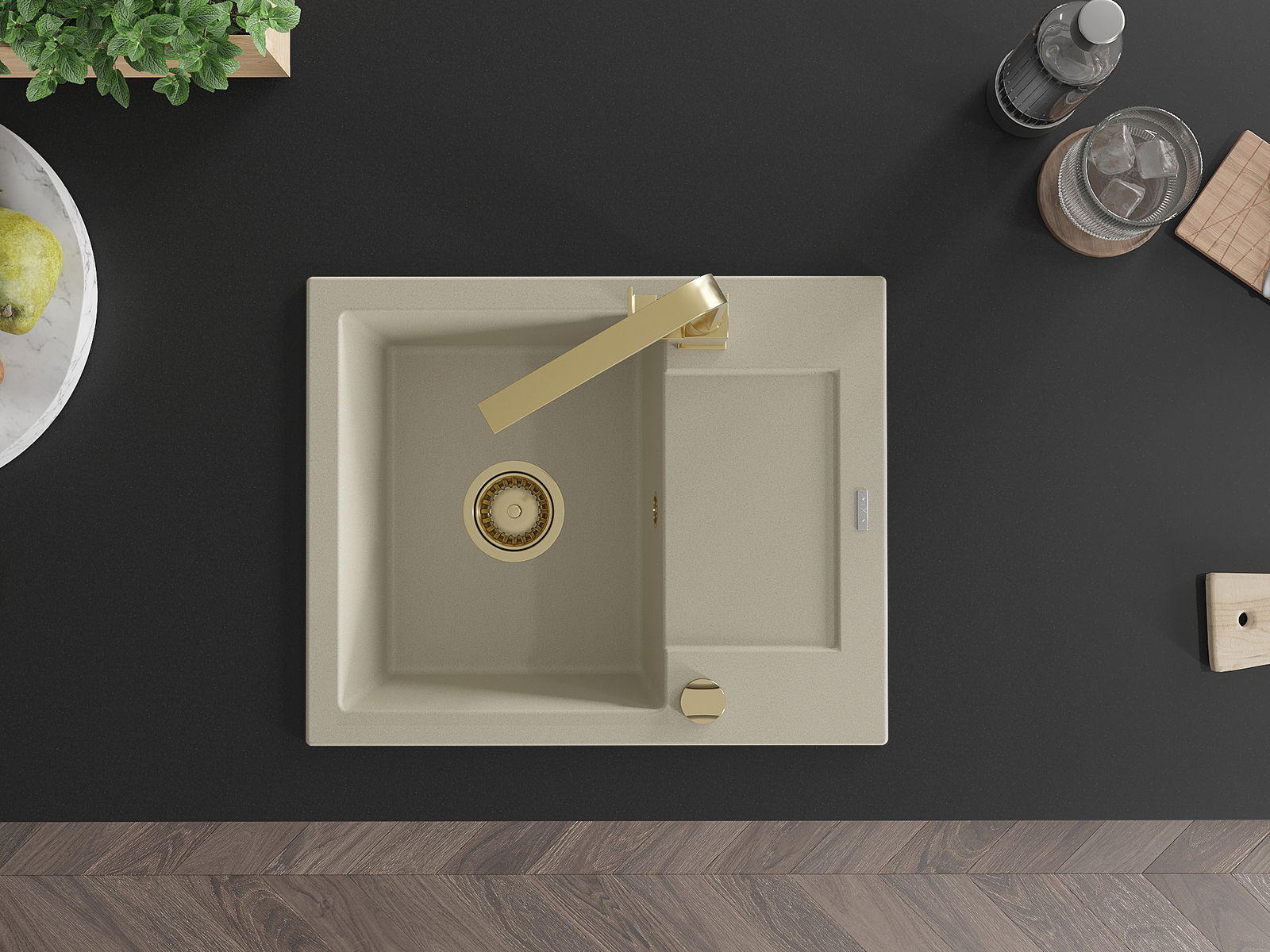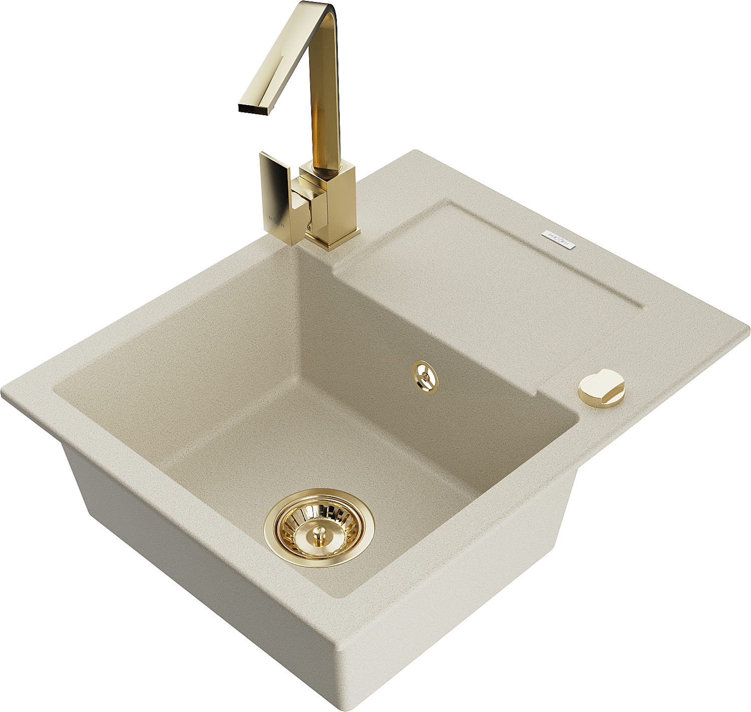 Mexen Enzo гранитна кухненска мивка с 1 отделение и отцедник и кухненски смесител Rita, бежов - 6506-69-670300-50